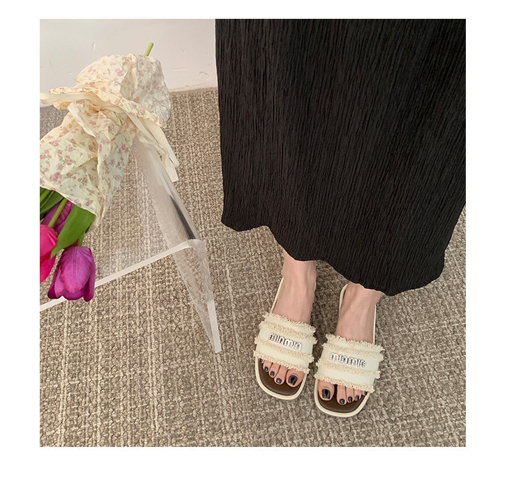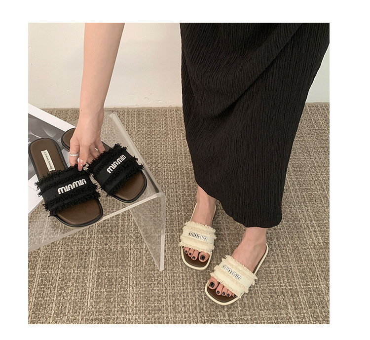 유행 올 매치 인터넷-인기있는 블랙 플랫 슬리퍼 여성 여름 외부 착용 2024 새로운 하이 엔드 경량 샌들
