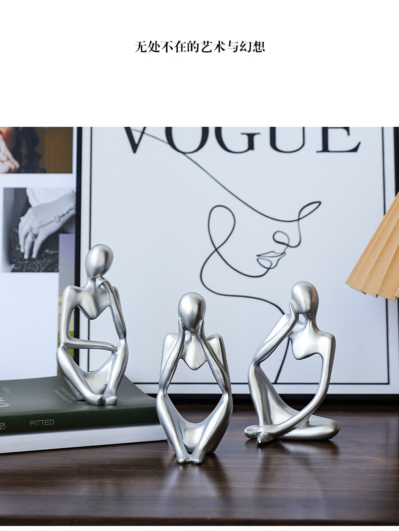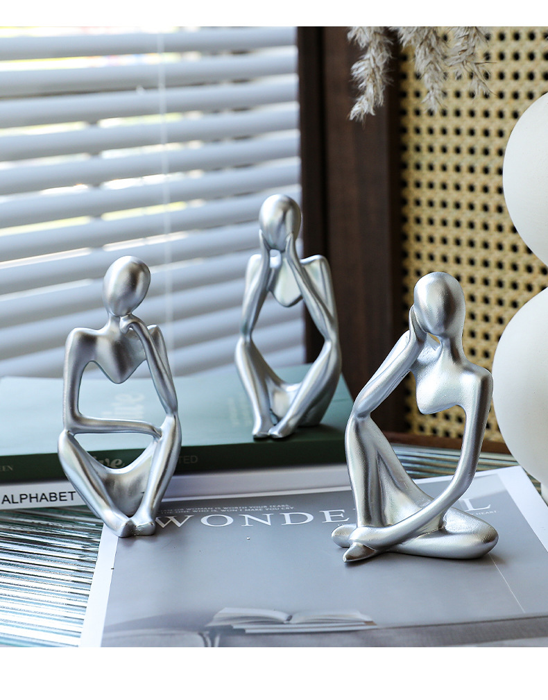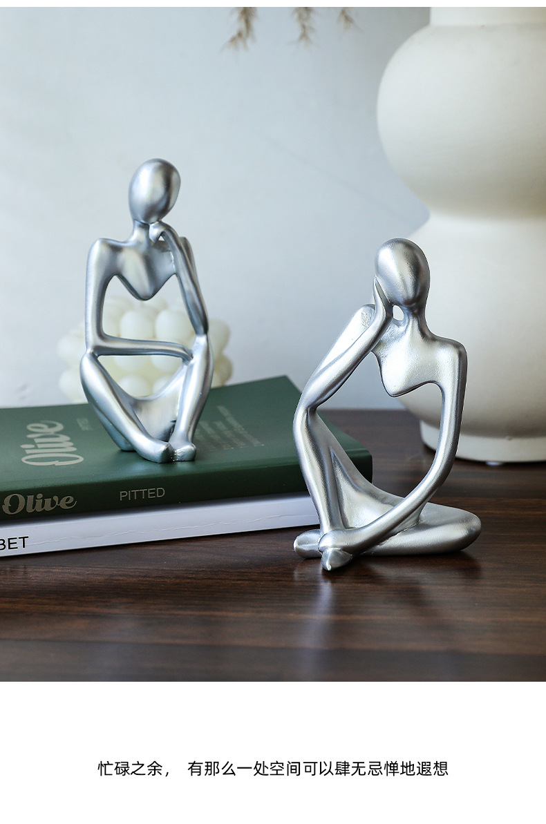 가벼운 럭셔리 실버 사상가 그림 조각상 북유럽 홈 커피 테이블 데스크탑 장식품 포즈 창조적 인 선물