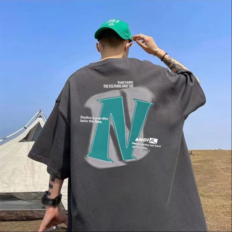280g 헤비 코튼 여름 짧은 소매 티셔츠 남성 홍콩 패션 브랜드, 느슨한 미국 하이 스트리트 크루 넥 커플 하프 슬리브