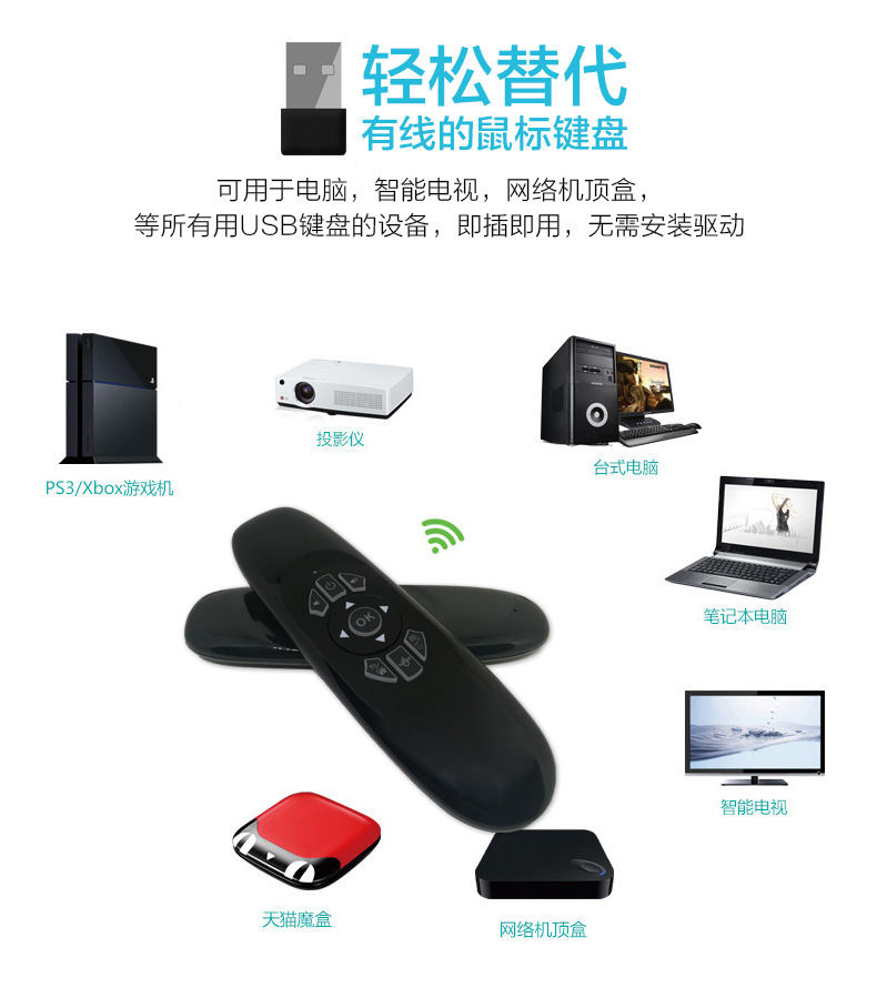 공기 비행 다람쥐 C120 백라이트 음성 키보드 원격 제어 무선 공기 비행 다람쥐 미니 키패드 마우스