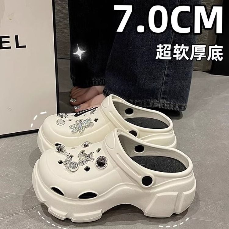 Stomp Feeling EVA 홀 신발 여성의 2024 새로운 여름 탱크 외부 두꺼운 밑창 높은 인터넷 기념 비치 샌들