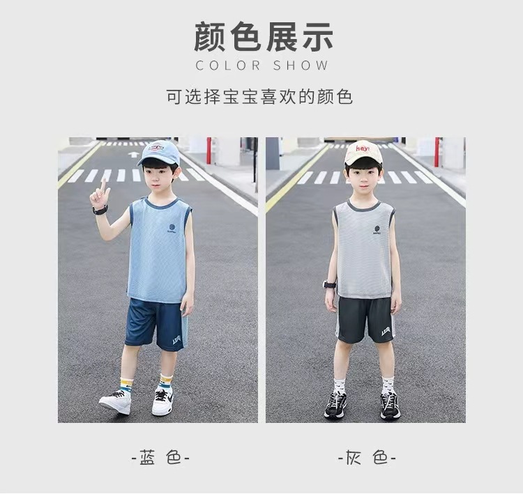 남학생 농구 옷 빠른 건조 세트 2024 어린이 민소매 조끼 여름 옷 소년 여름 중대형 어린이 스포츠 저지스토어 가기