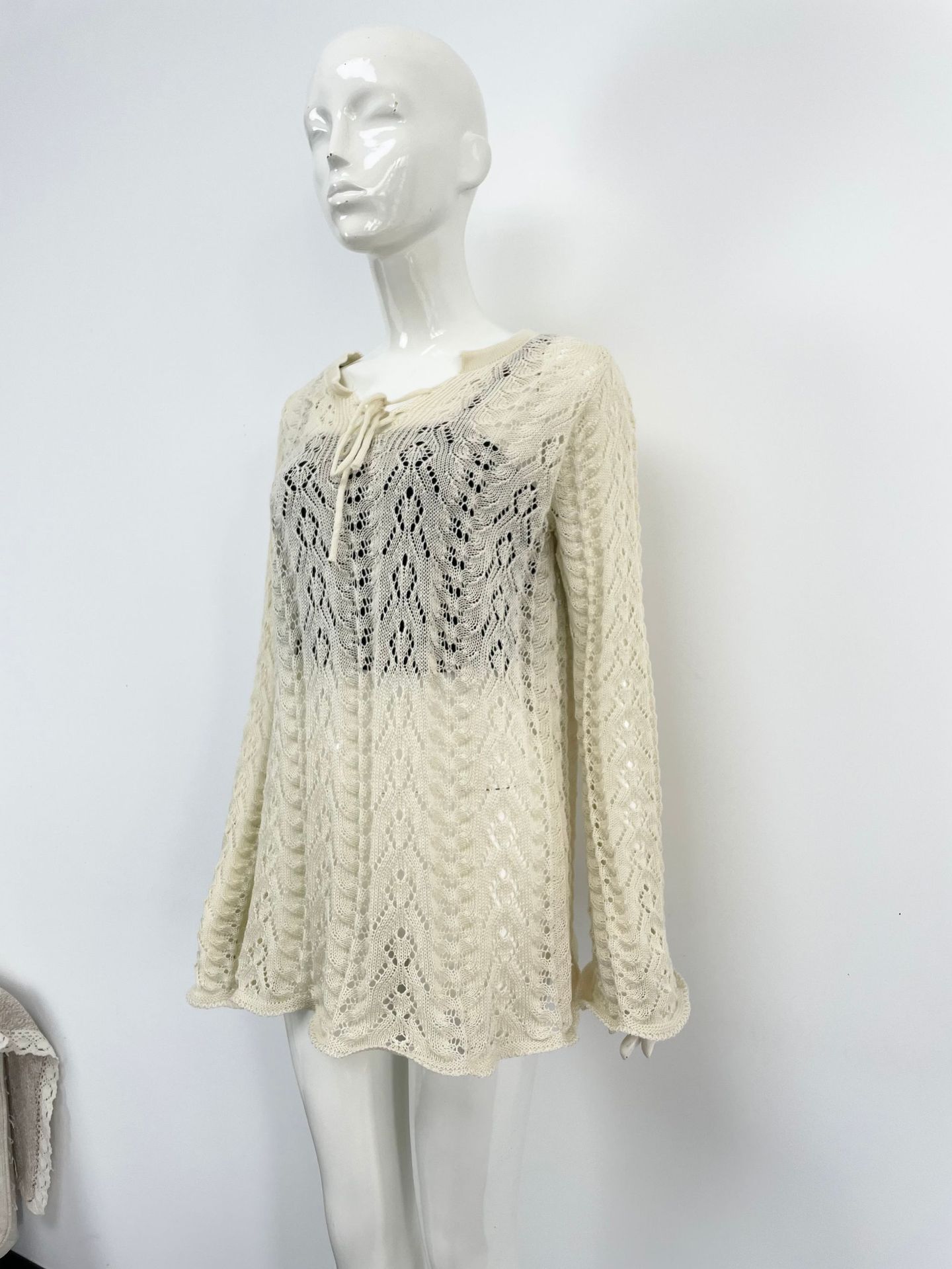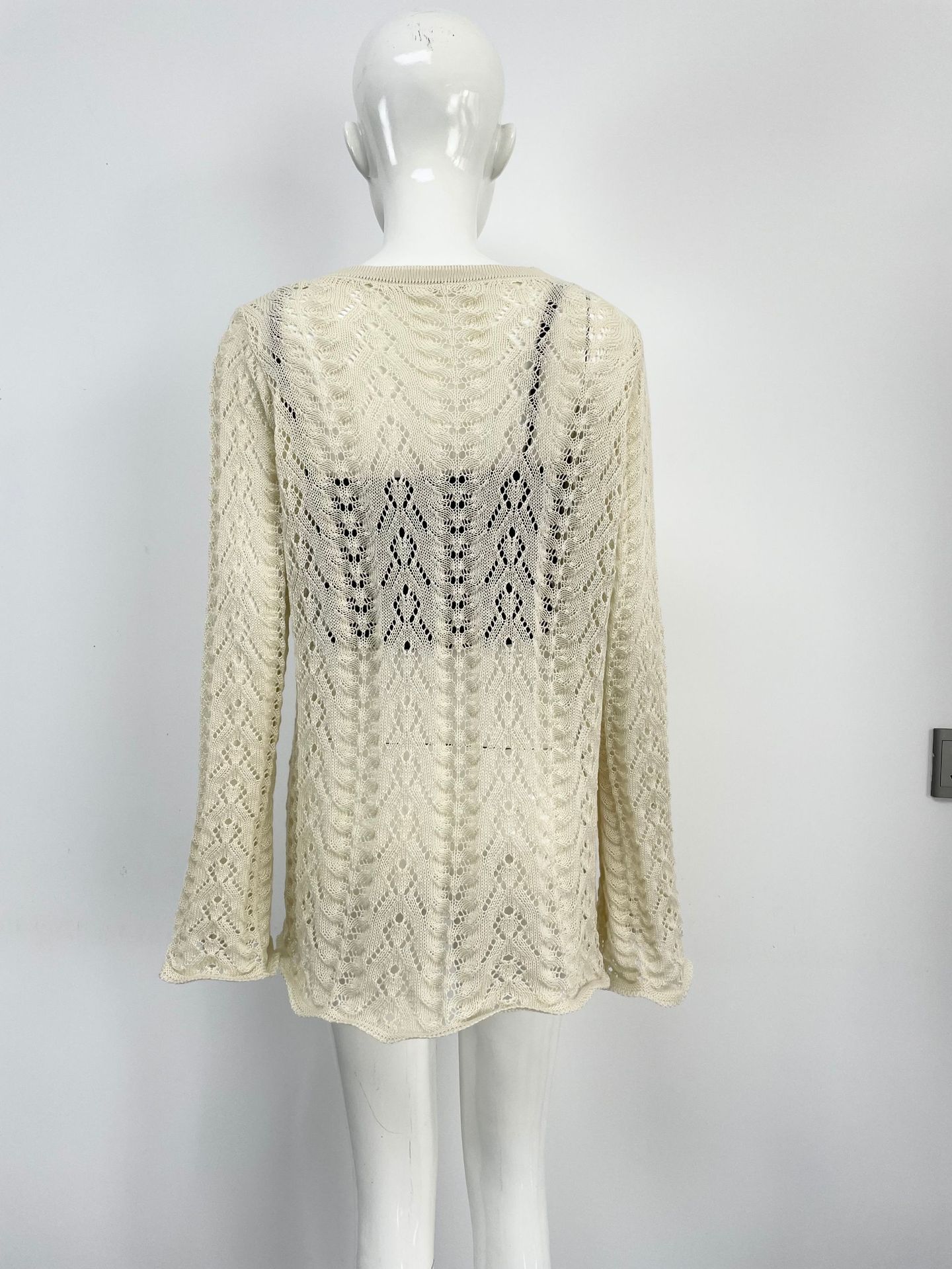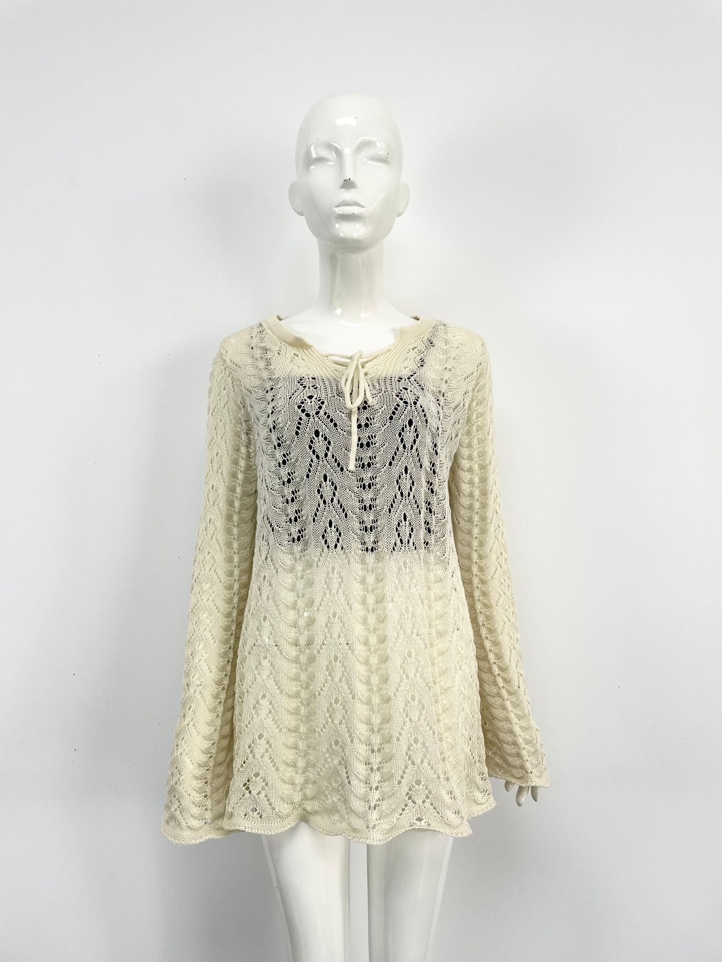 봄 여름 니트 레이스 블라우스 루즈핏 라운드넥 레이스업 얇은 탑 유럽 및 미국 스타일 여성용 자외선 차단 스웨터