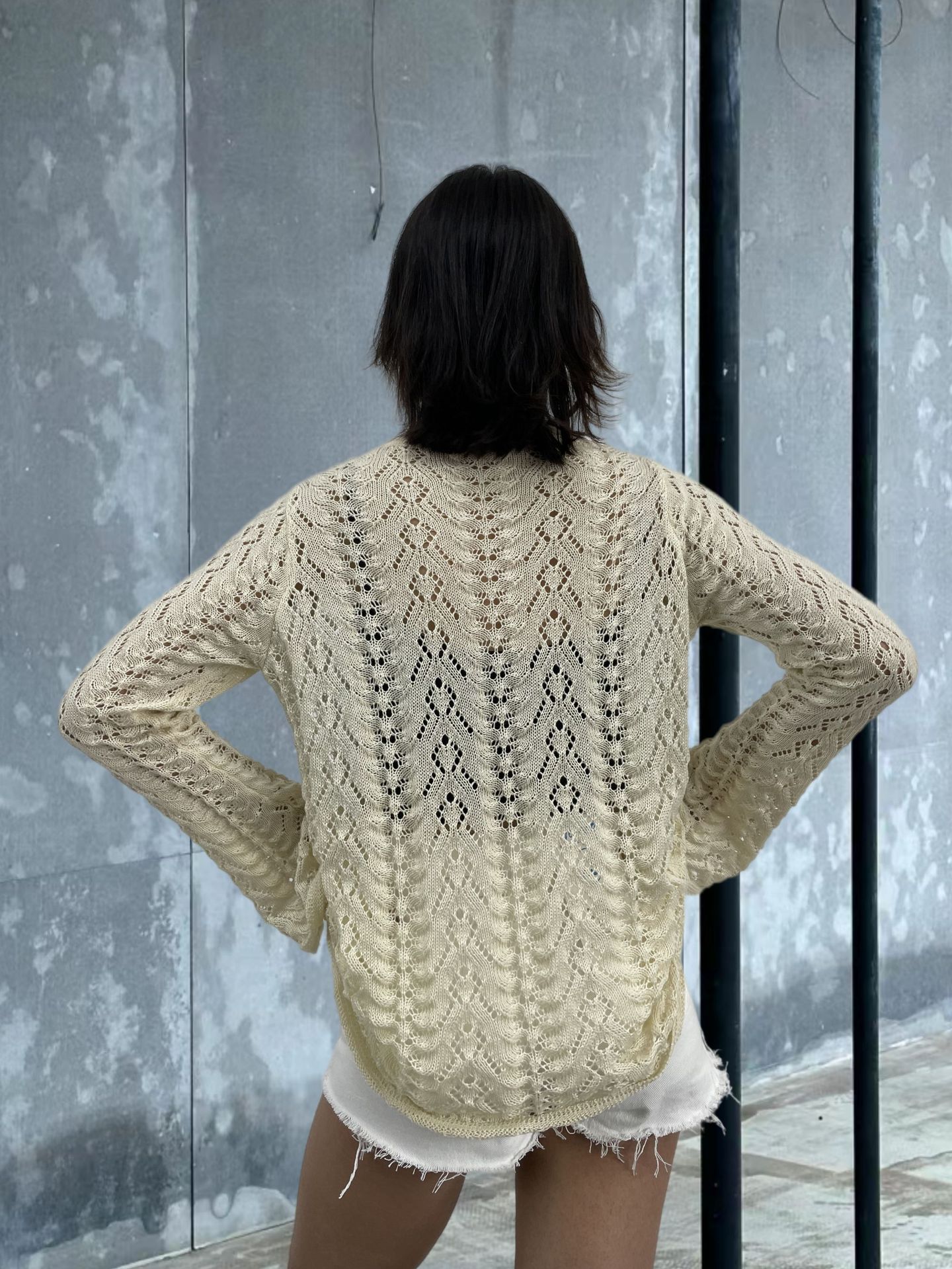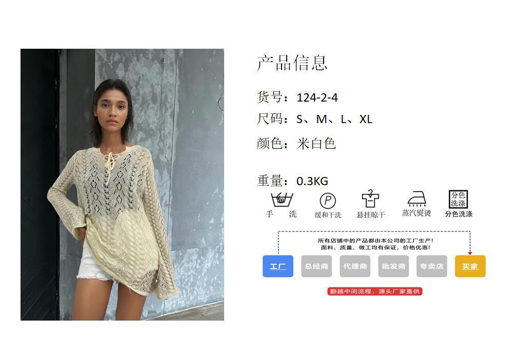 봄 여름 니트 레이스 블라우스 루즈핏 라운드넥 레이스업 얇은 탑 유럽 및 미국 스타일 여성용 자외선 차단 스웨터스토어 가기