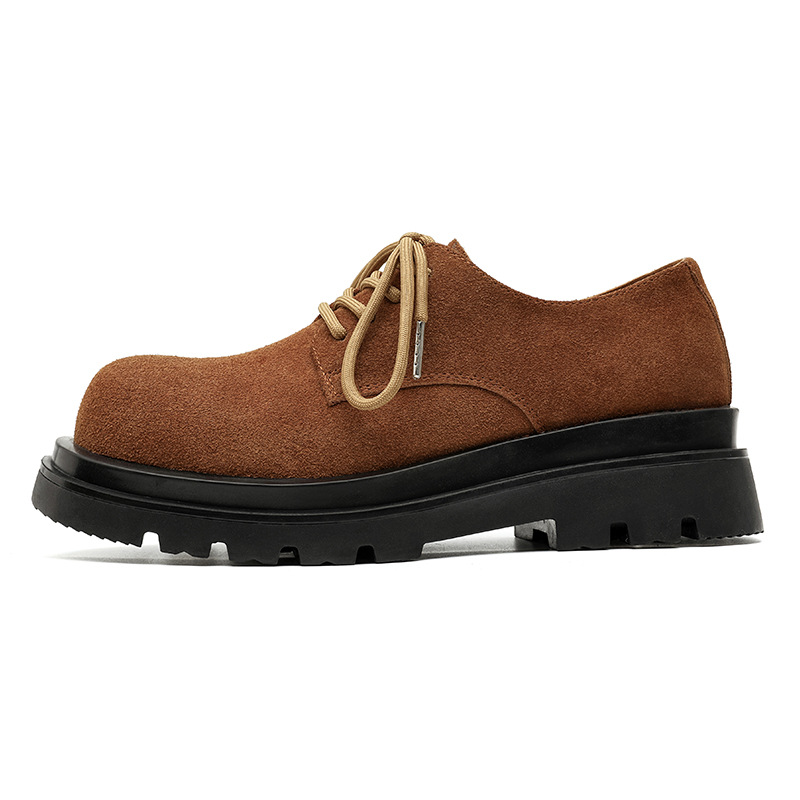 새로운 다크 브라운 모피 더비 신발 남성 캐주얼 가죽 신발 정품 가죽 플랫폼 큰 발가락 신발 라운드 발가락 강화 원피스 신발