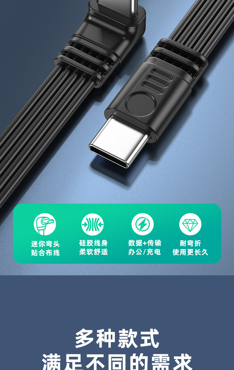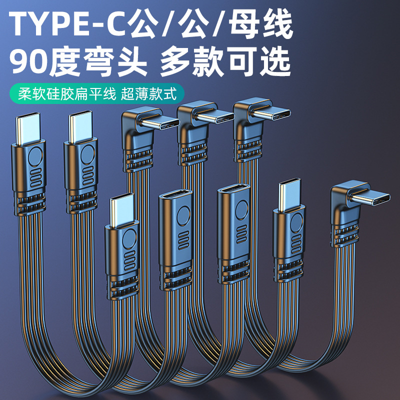 타입C 플랫 실리콘 소프트 케이블 타입C 상하좌우 90도 굽은 데이터 케이블 타입C 암커넥터 충전 케이블