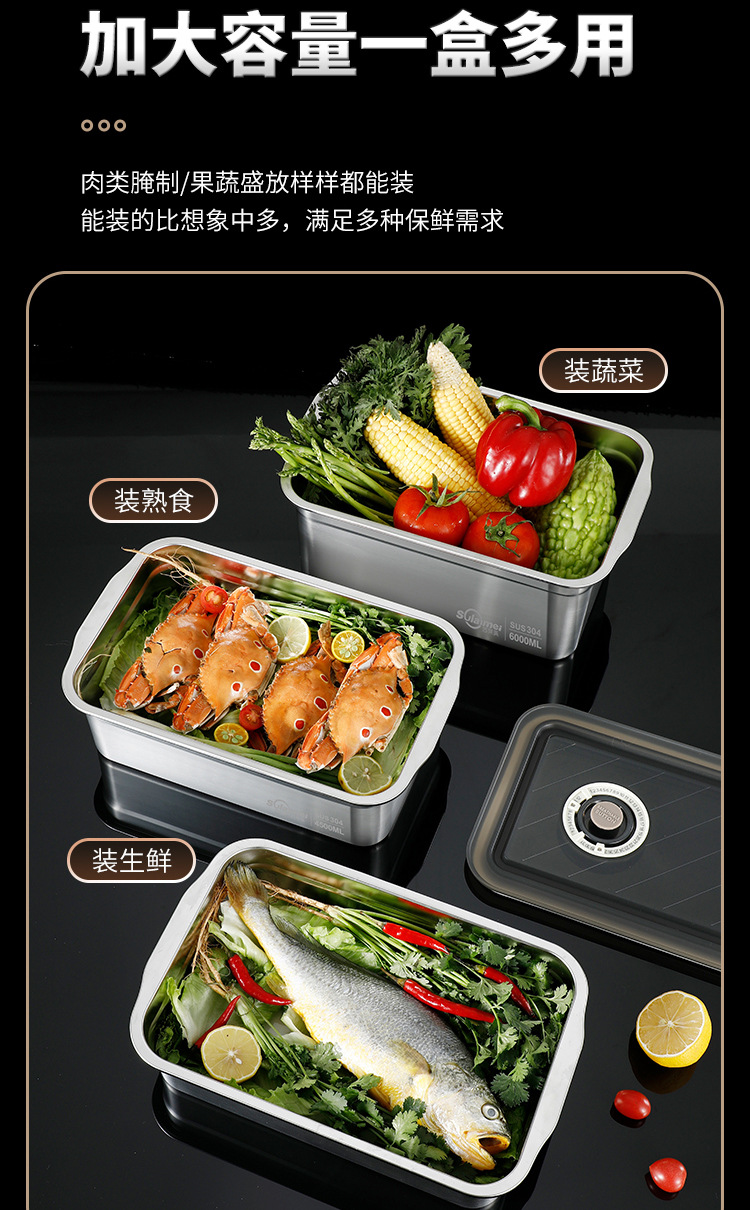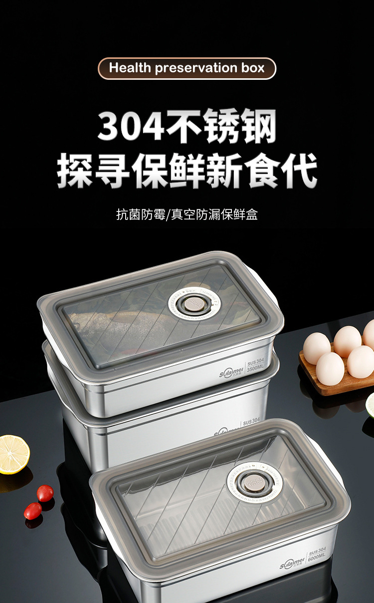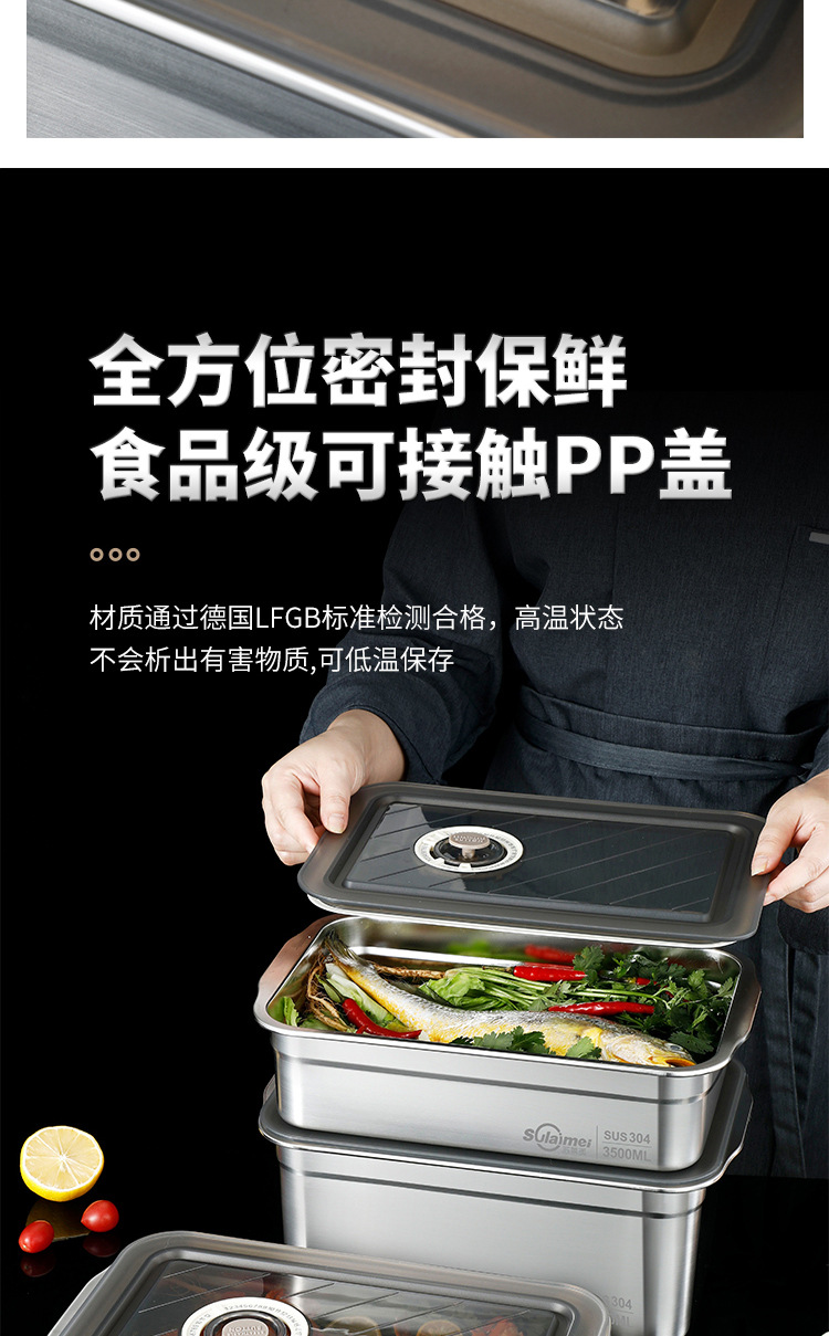 304 스테인레스 스틸 신선한 보관 상자 냉장고 뚜껑 누출 방지 밀봉 상자가있는 빠른 냉동 과일 및 야채 식품 보관 상자스토어 가기