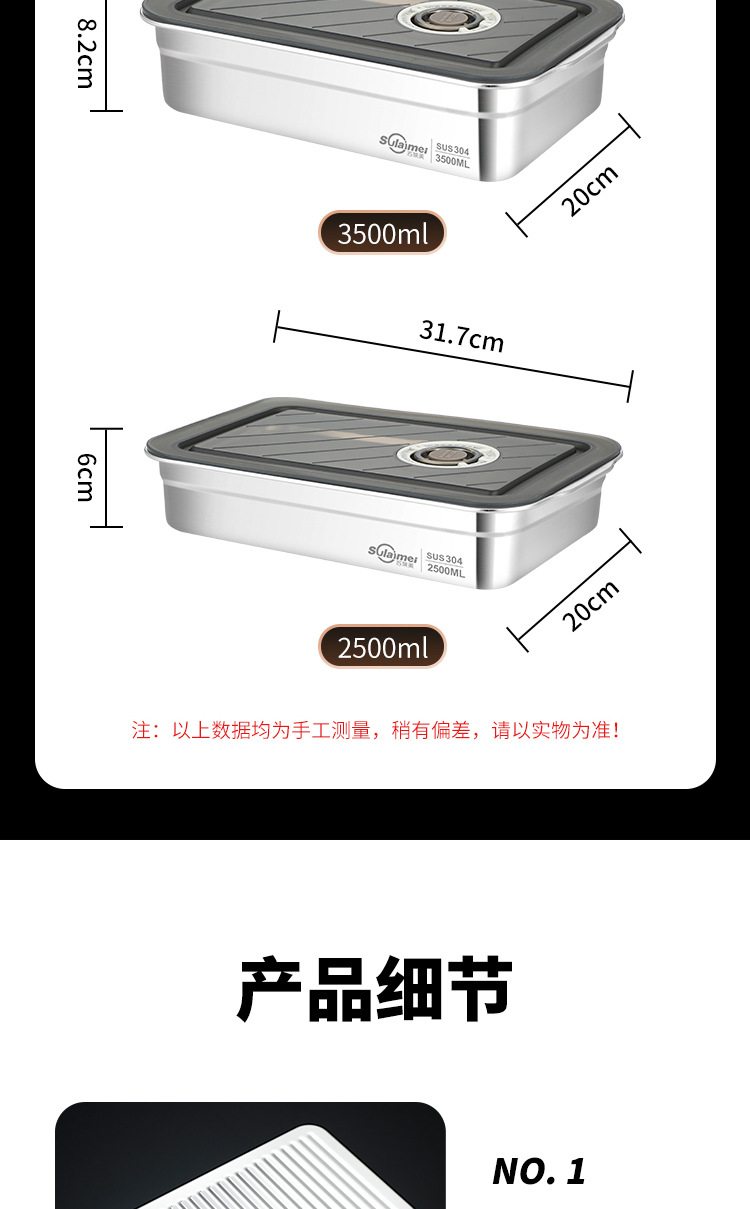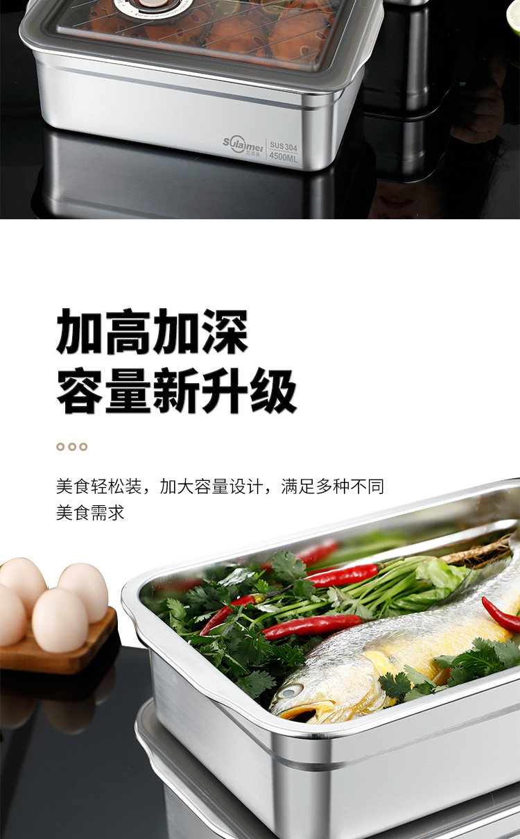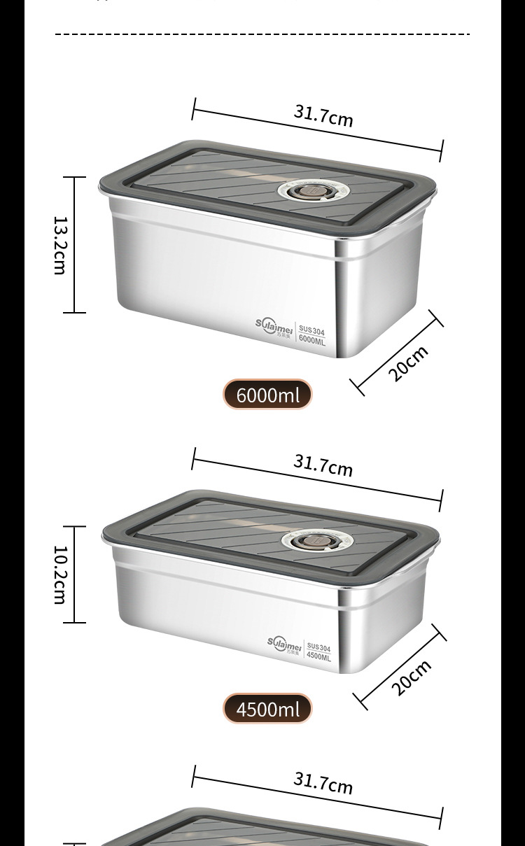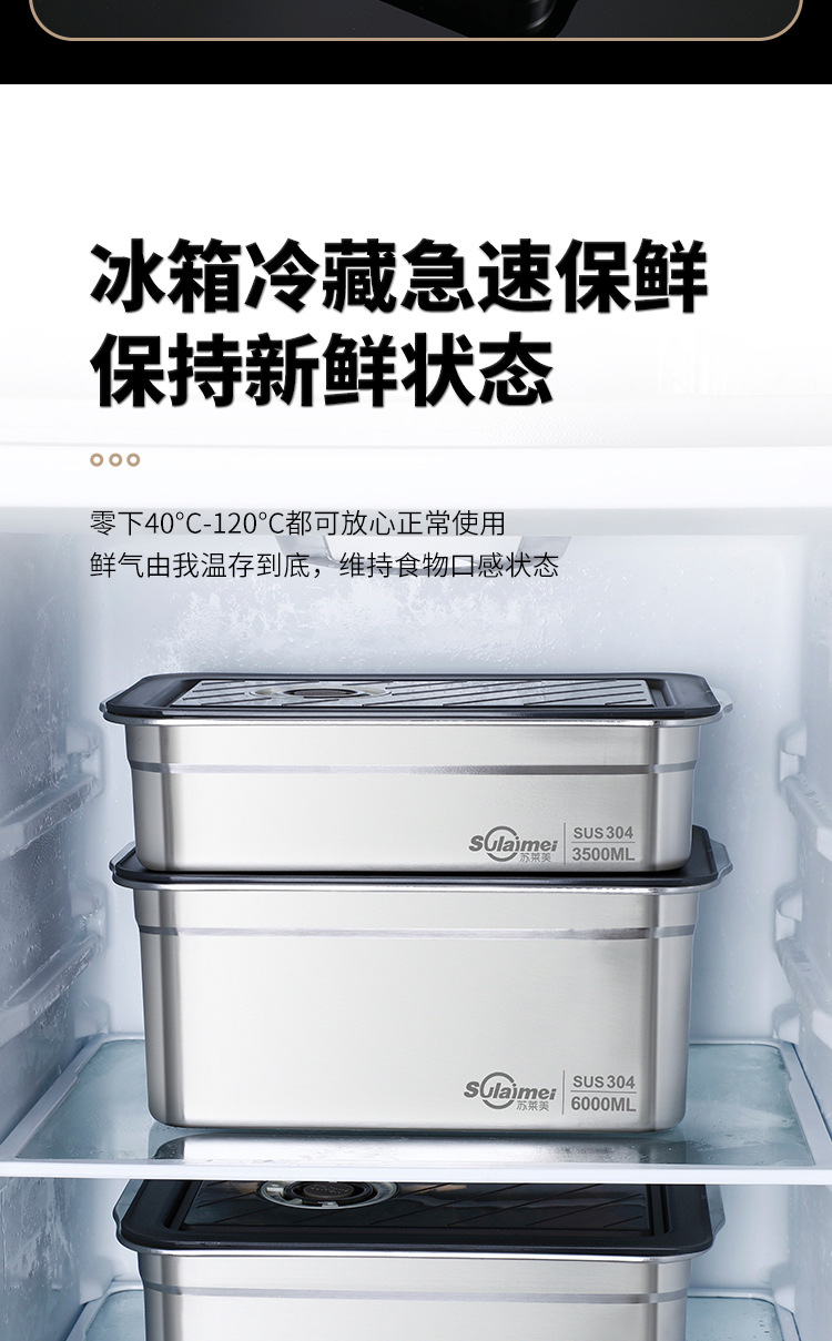 304 스테인레스 스틸 신선한 보관 상자 냉장고 뚜껑 누출 방지 밀봉 상자가있는 빠른 냉동 과일 및 야채 식품 보관 상자스토어 가기