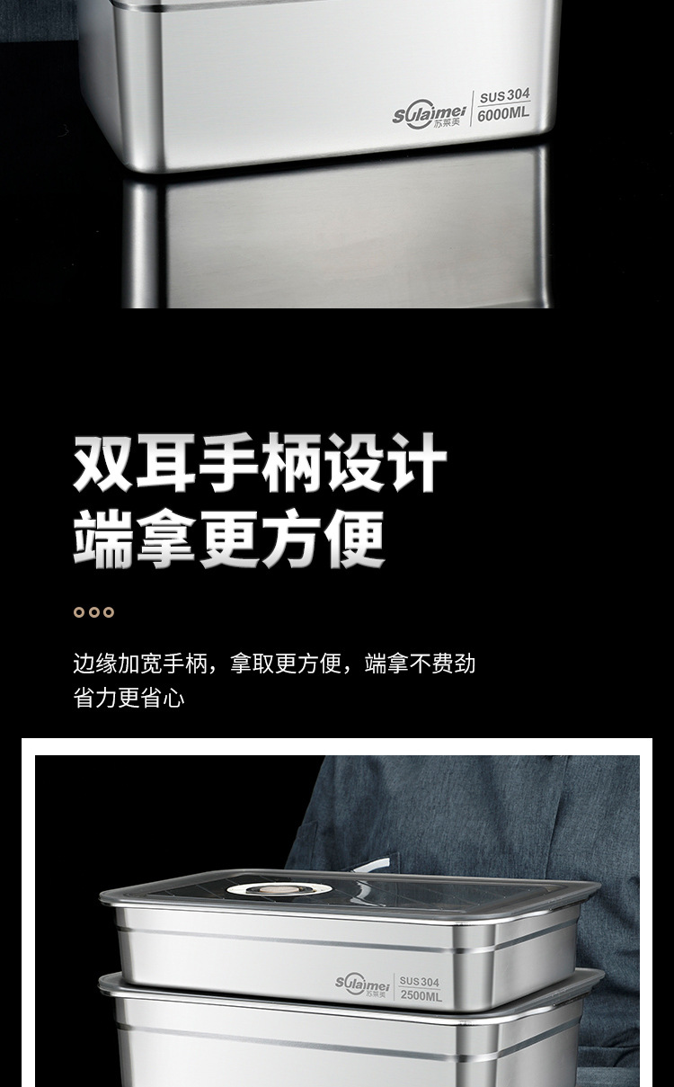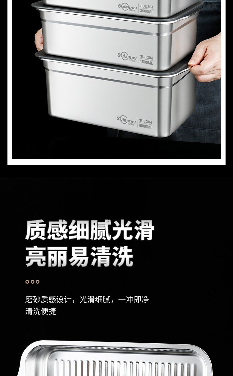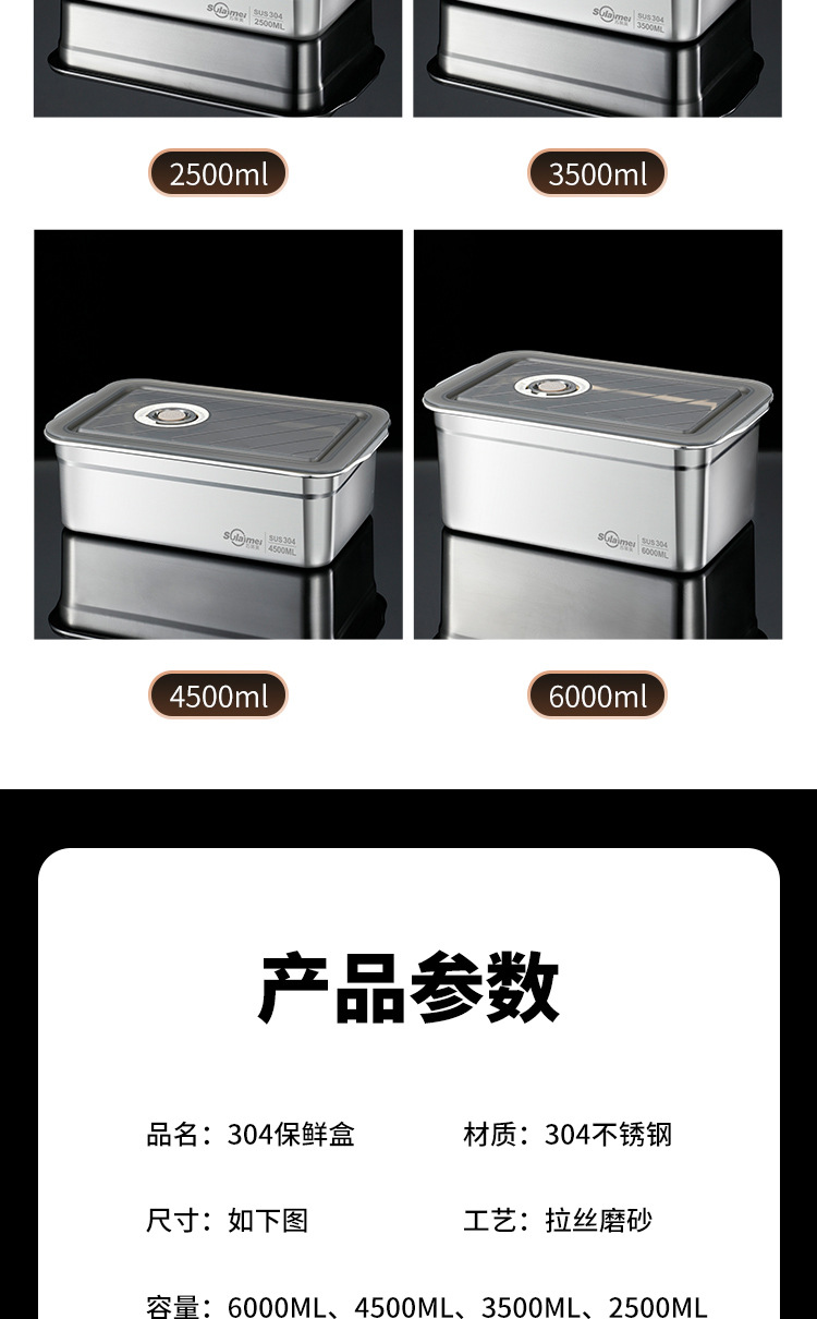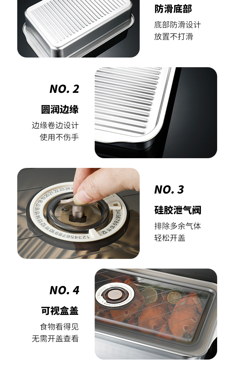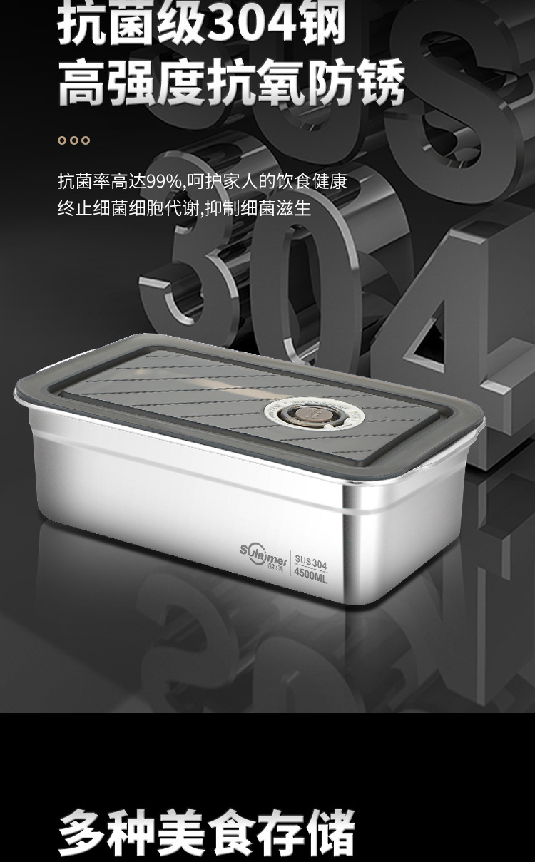 304 스테인레스 스틸 신선한 보관 상자 냉장고 뚜껑 누출 방지 밀봉 상자가있는 빠른 냉동 과일 및 야채 식품 보관 상자