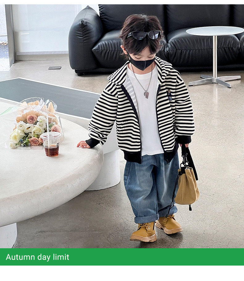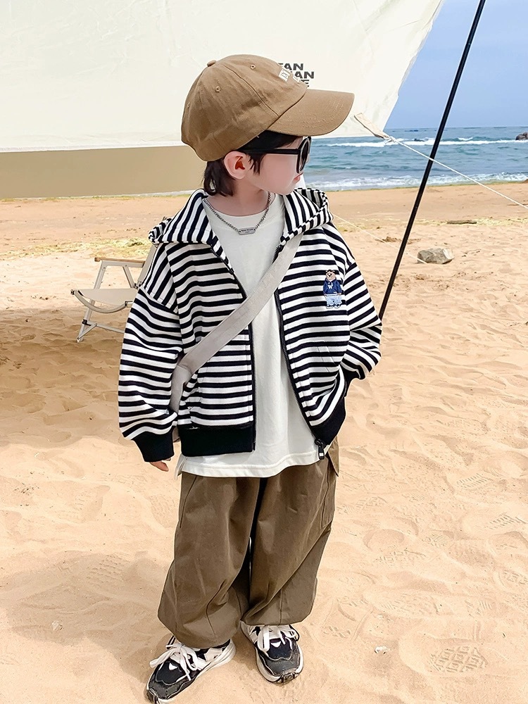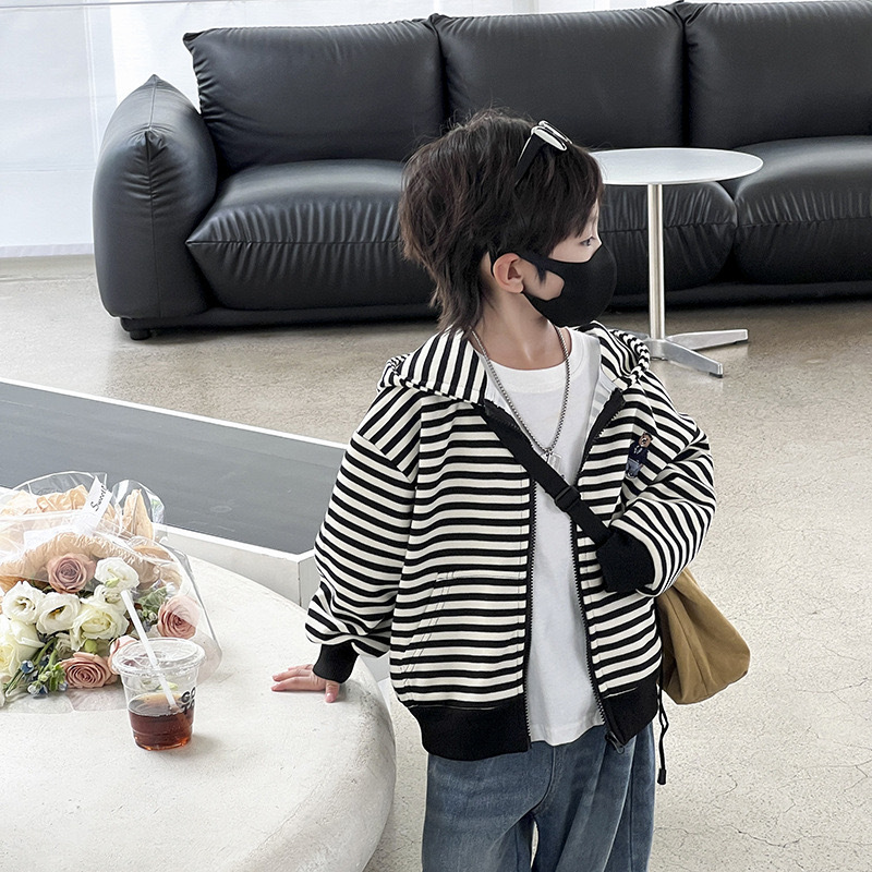 남아 스트라이프 자켓 2026 신상 아동복 한국 스타일 캐주얼 후드티 봄 가을 얇은 트렌디 숏 스타일스토어 가기