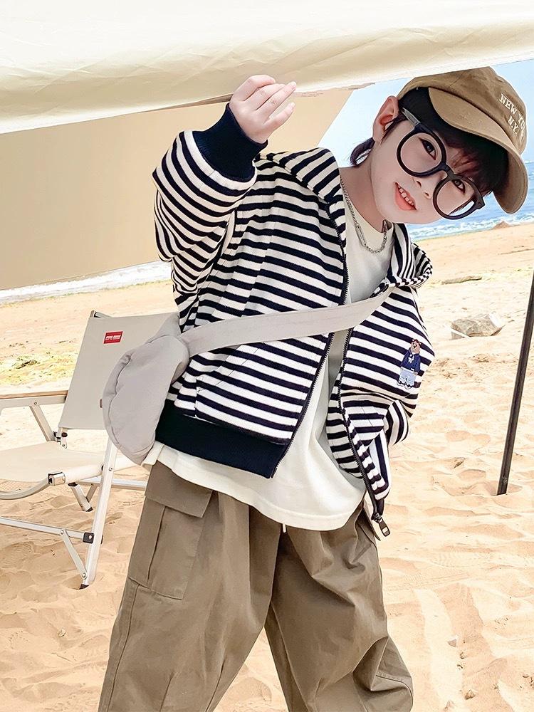 남아 스트라이프 자켓 2026 신상 아동복 한국 스타일 캐주얼 후드티 봄 가을 얇은 트렌디 숏 스타일