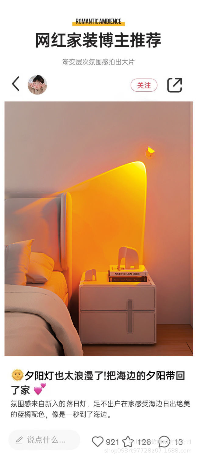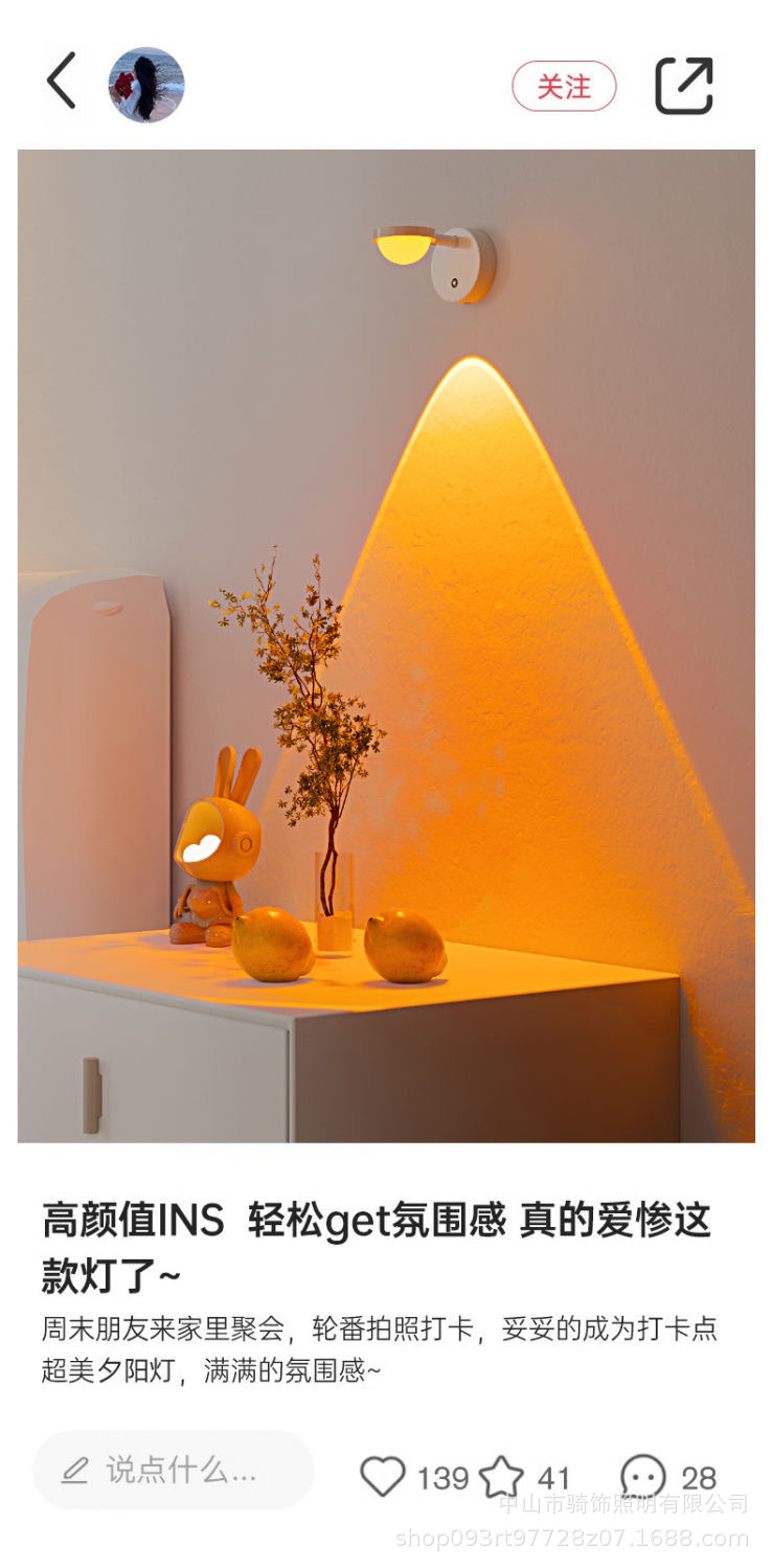 벽 램프 자기 충전 3 색 디밍 일몰 빨간색 파란색 보라색 깨진 빛 임의의 흡수 벽 카메라 유물스토어 가기