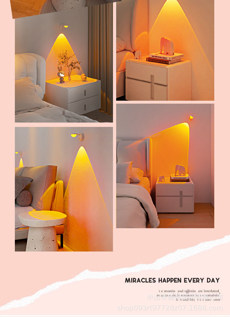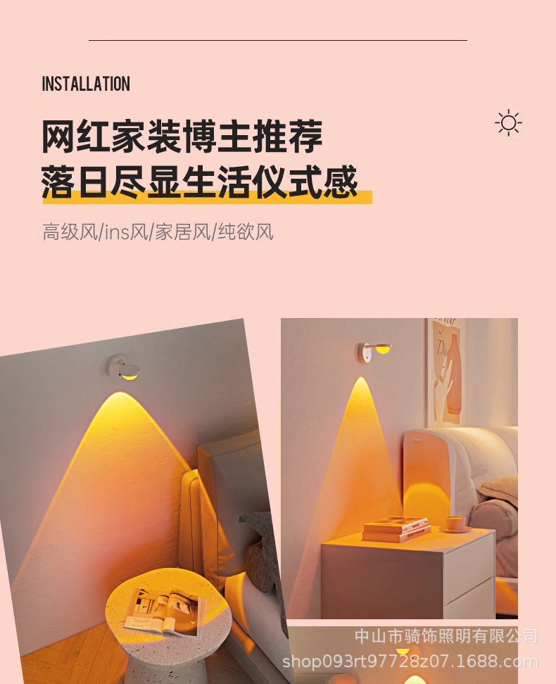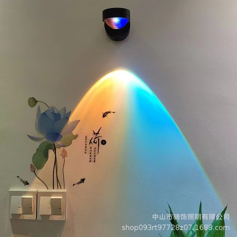 벽 램프 자기 충전 3 색 디밍 일몰 빨간색 파란색 보라색 깨진 빛 임의의 흡수 벽 카메라 유물