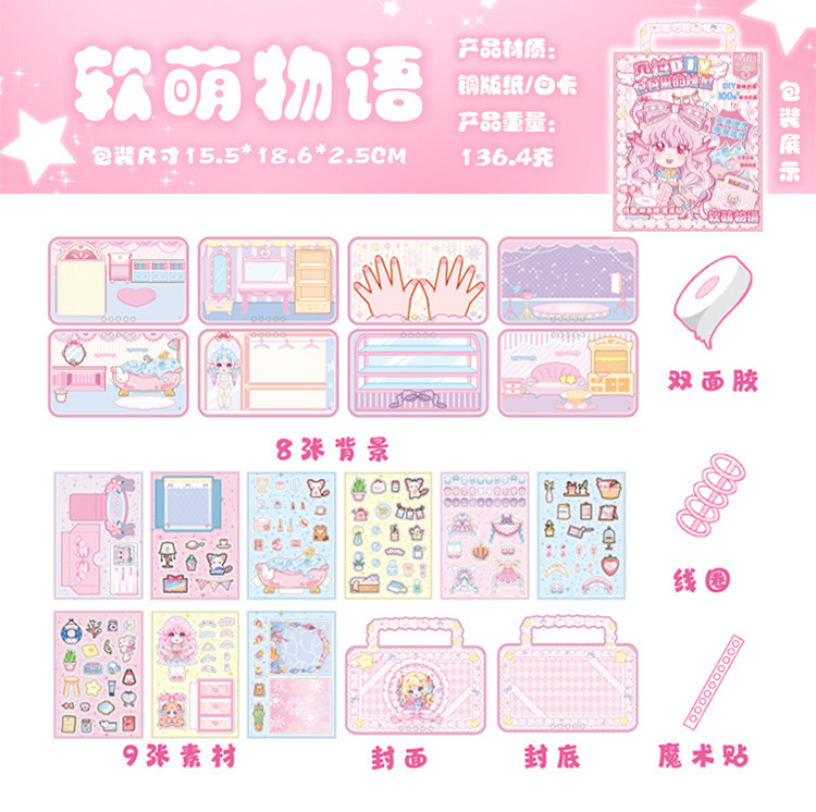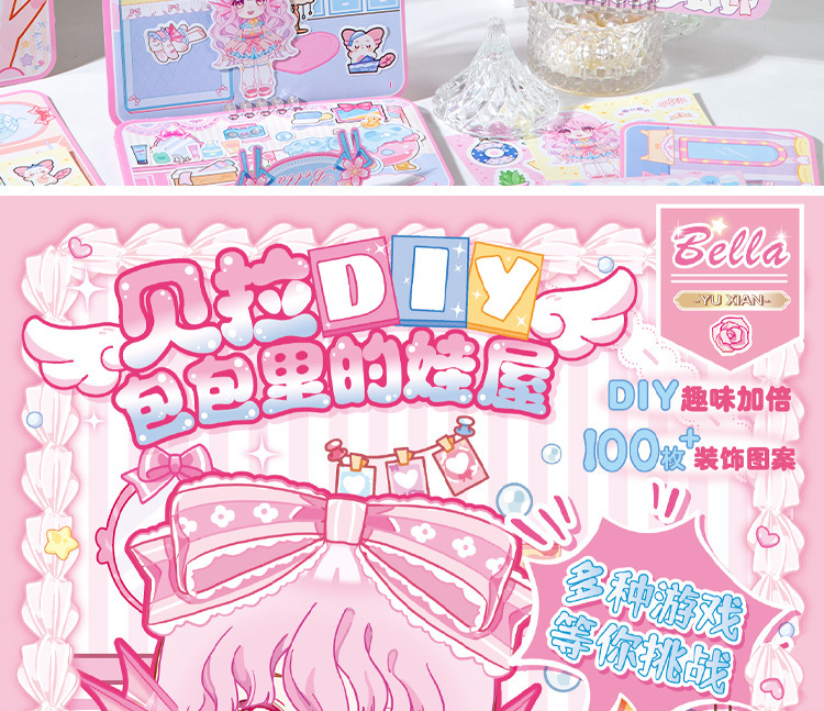 언어 레저 선물 상자 벨라 DIY 가방 베이비 하우스 귀여운 창조적 인 절단-무료 어린이 감압 수제 게임 북