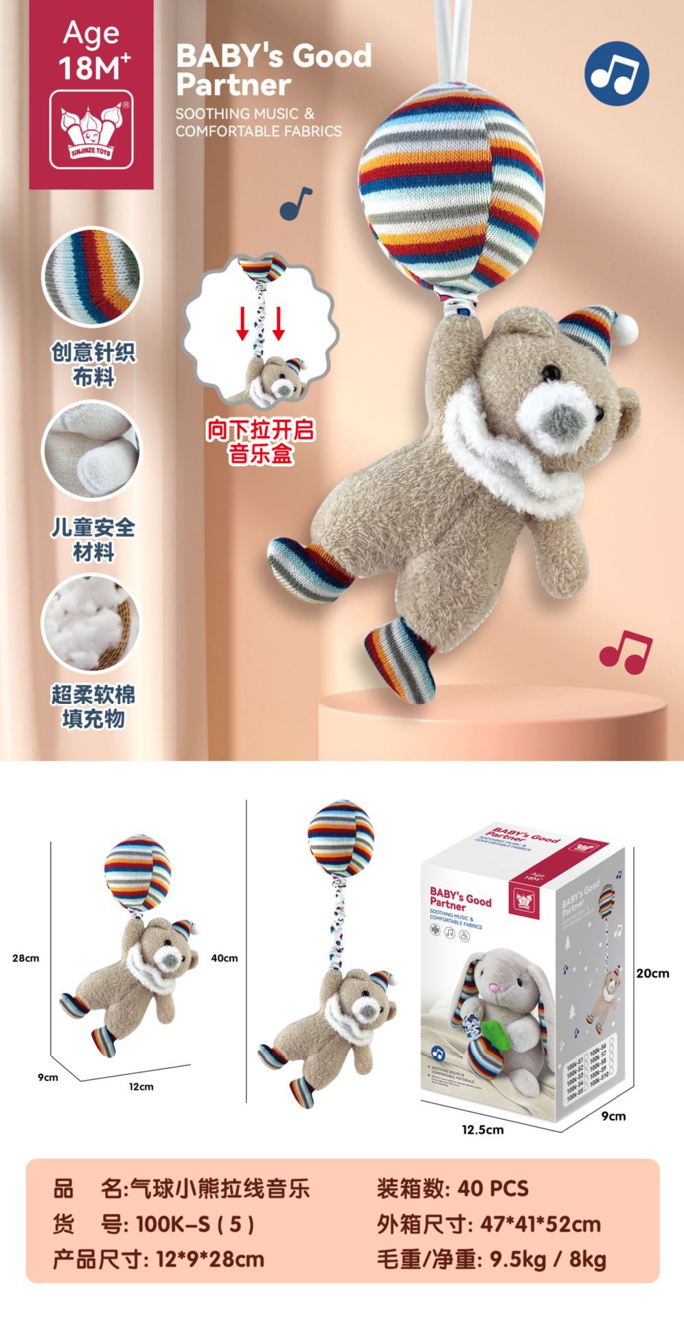 • 100K-S(5) 풍선 곰 케이블 음악 상자 [영어 색상 상자]