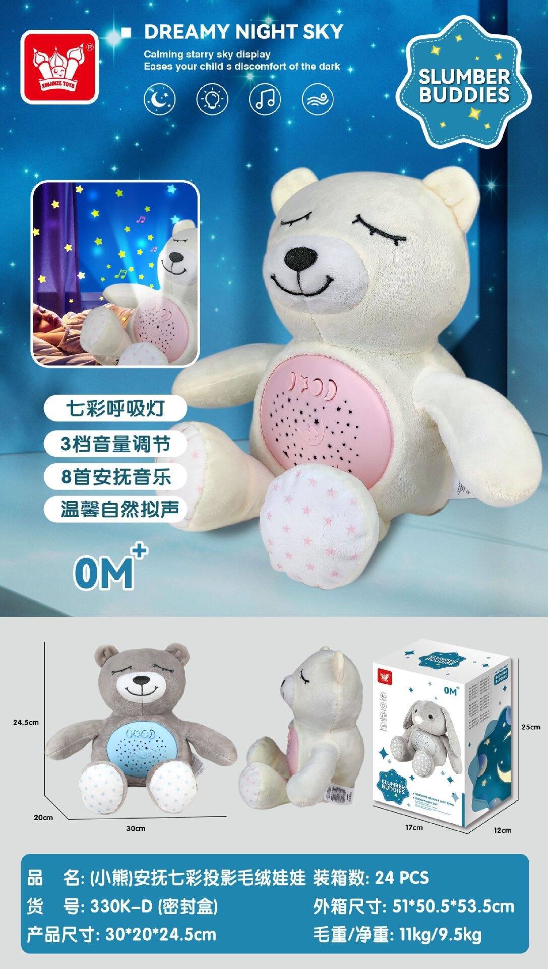 국경 간 유아용 침대 벨 곰 봉제 인형 어린이 풀 스트링 음악 상자 편안한 인형 프로젝션 장난감 도매스토어 가기