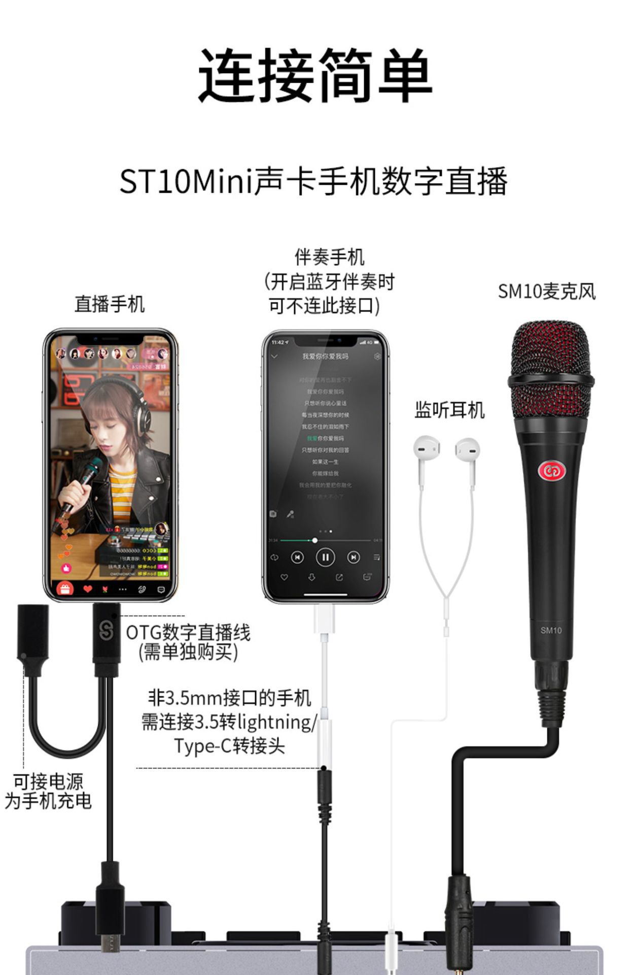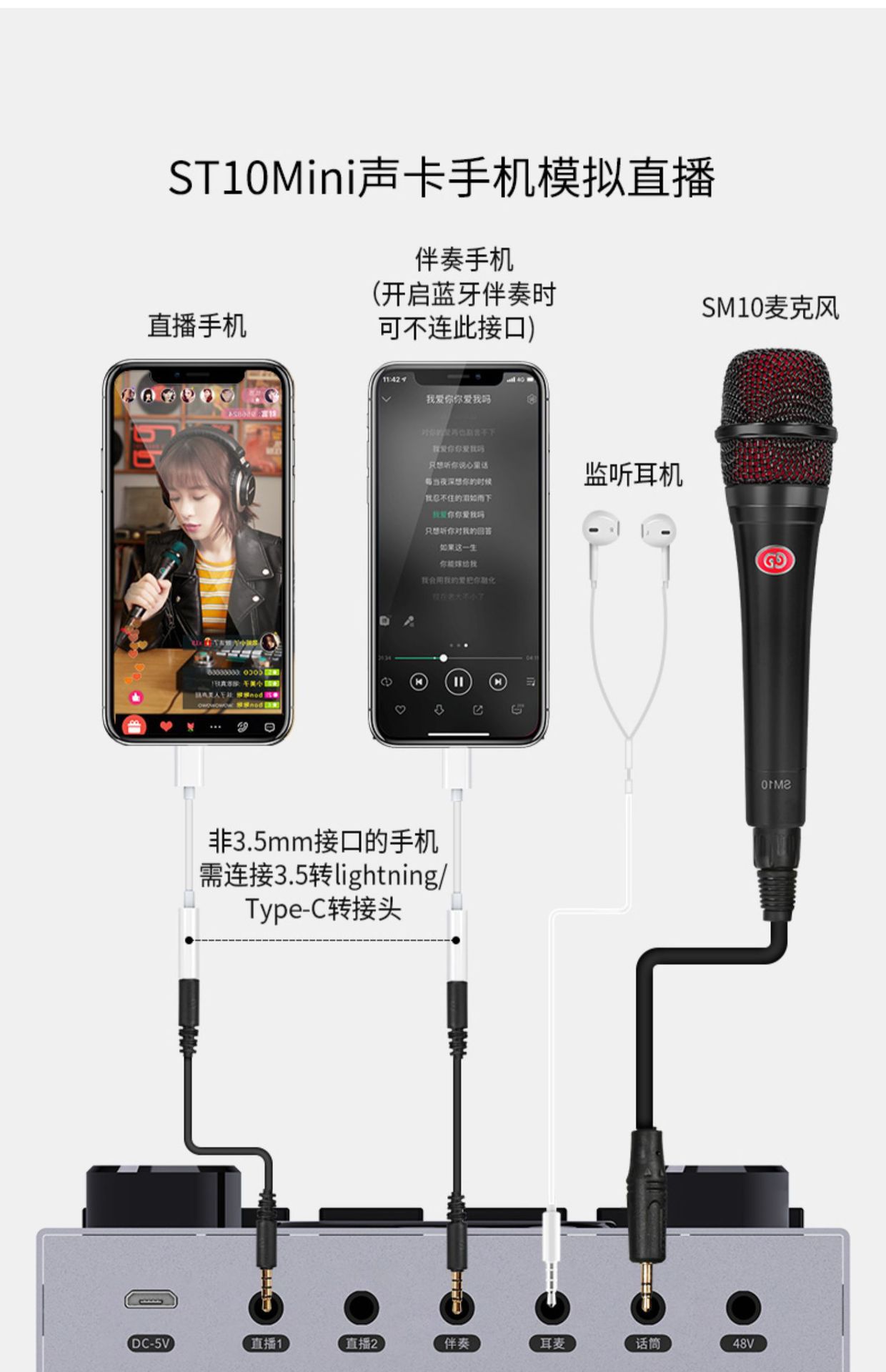 센란 방송 바 ST10mini 휴대 전화 사운드 카드 K 노래 라이브 장비 전체 앵커 마이크 세트