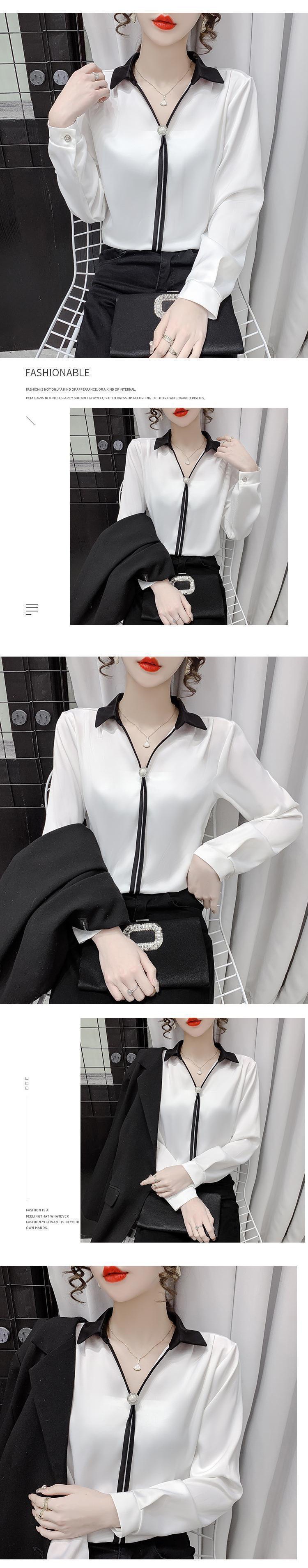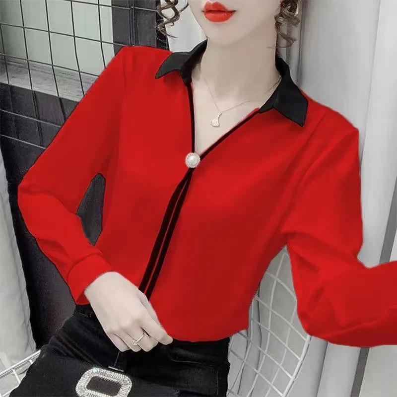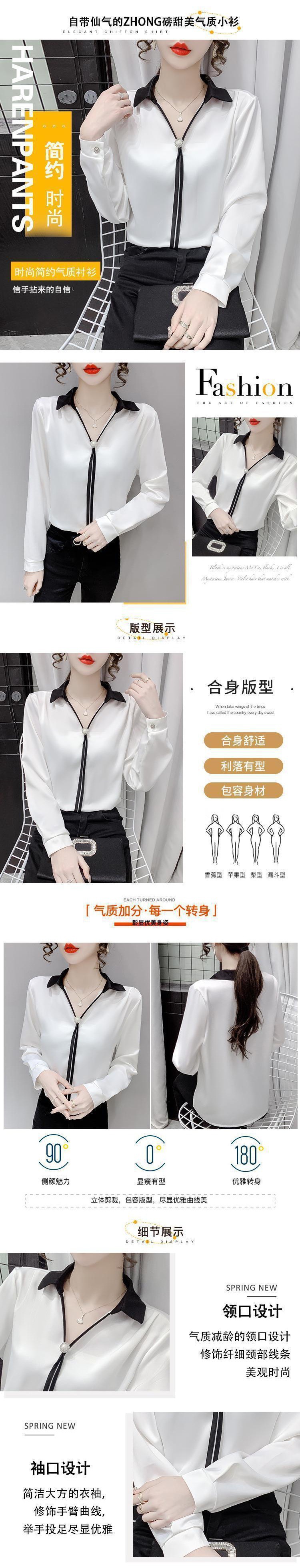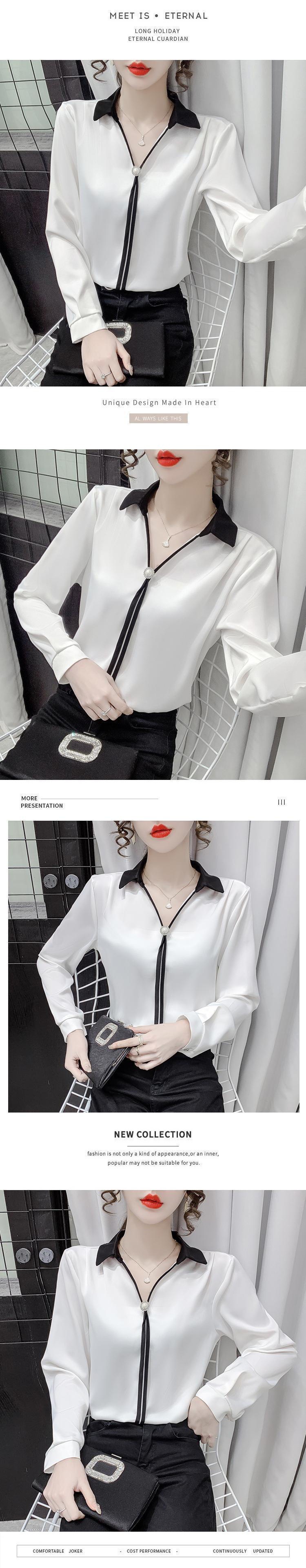 화이트 쉬폰 셔츠 여성용 긴 소매 봄과 가을 새로운 우아한 탑 티셔츠 외부 착용 V-Neck 셔츠스토어 가기