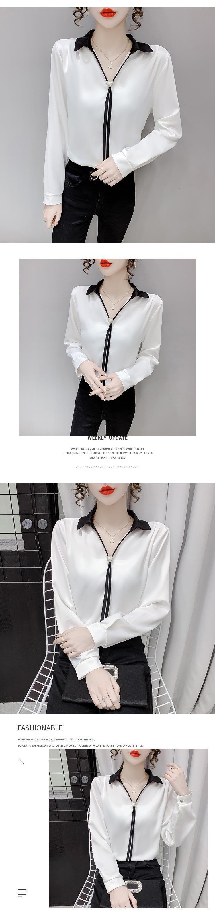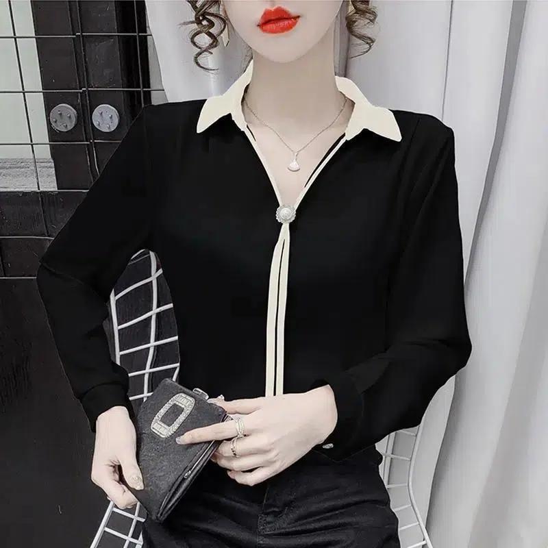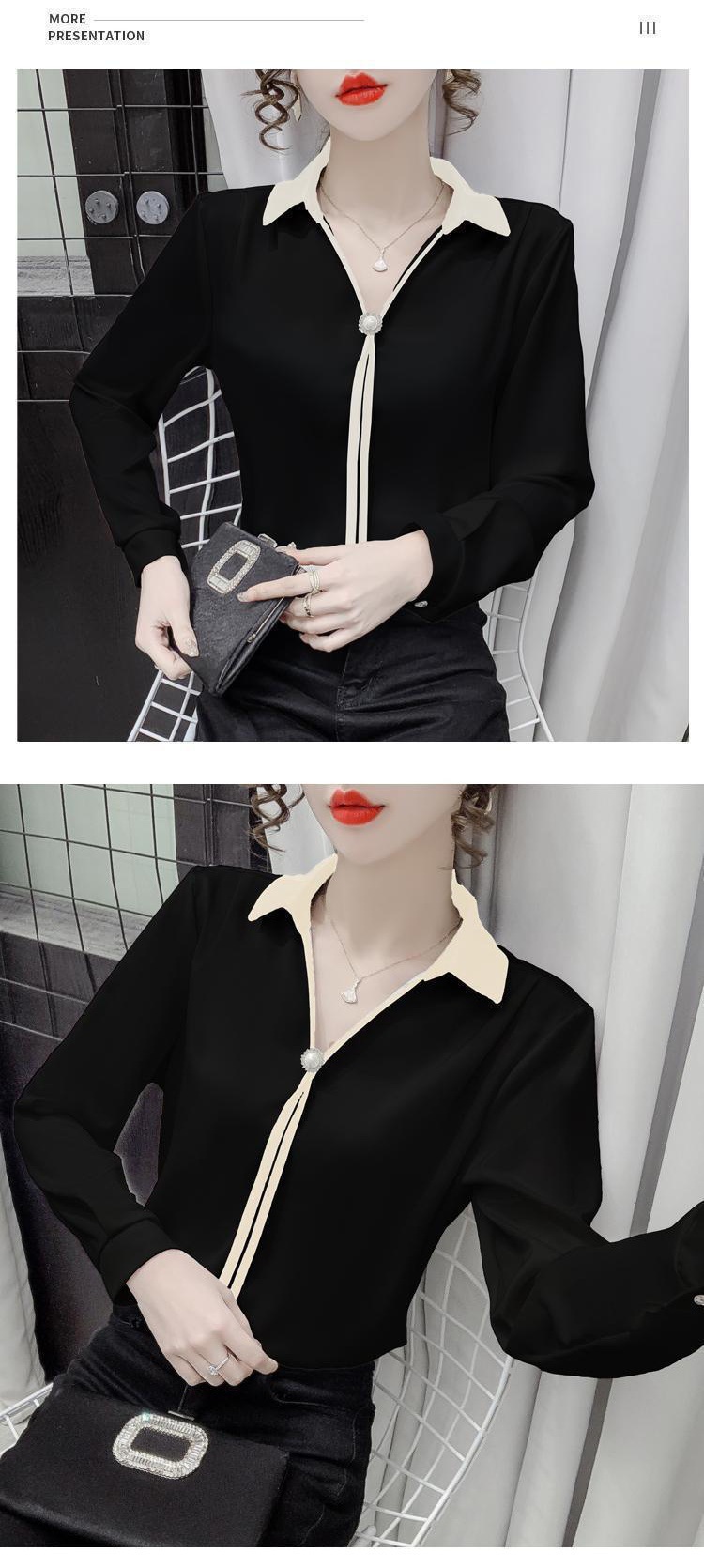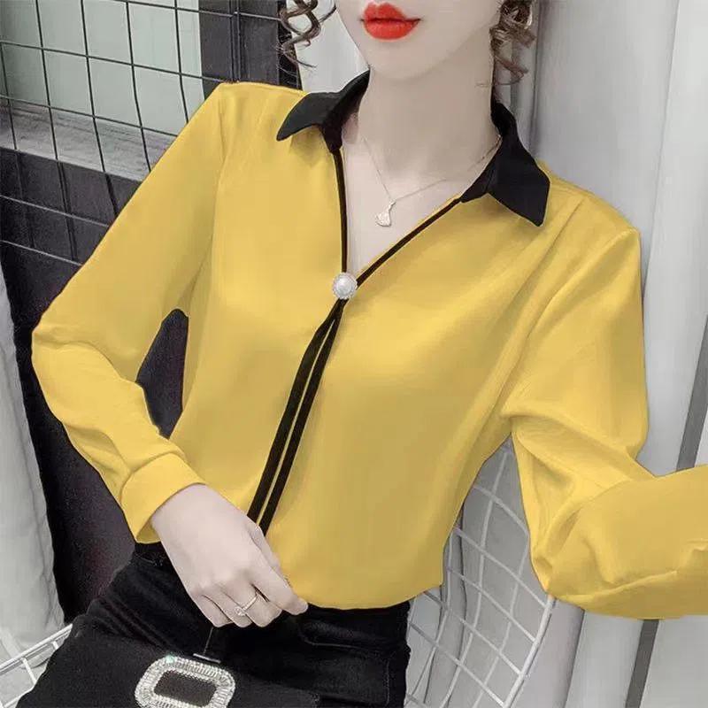 화이트 쉬폰 셔츠 여성용 긴 소매 봄과 가을 새로운 우아한 탑 티셔츠 외부 착용 V-Neck 셔츠스토어 가기