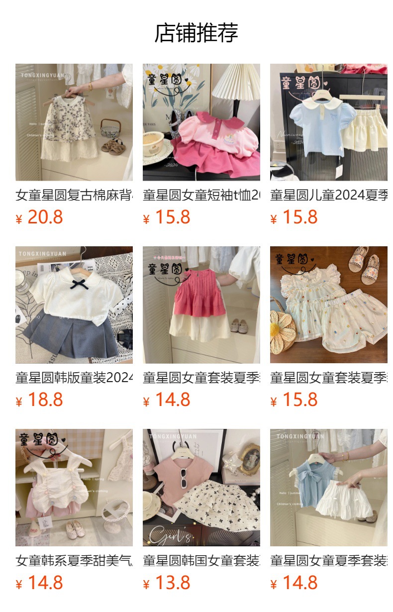 Tongxingyuan 여자 여름 2024 새로운 스타일의 인형 셔츠 반바지 세트 어린이 달콤한 여름 옷스토어 가기
