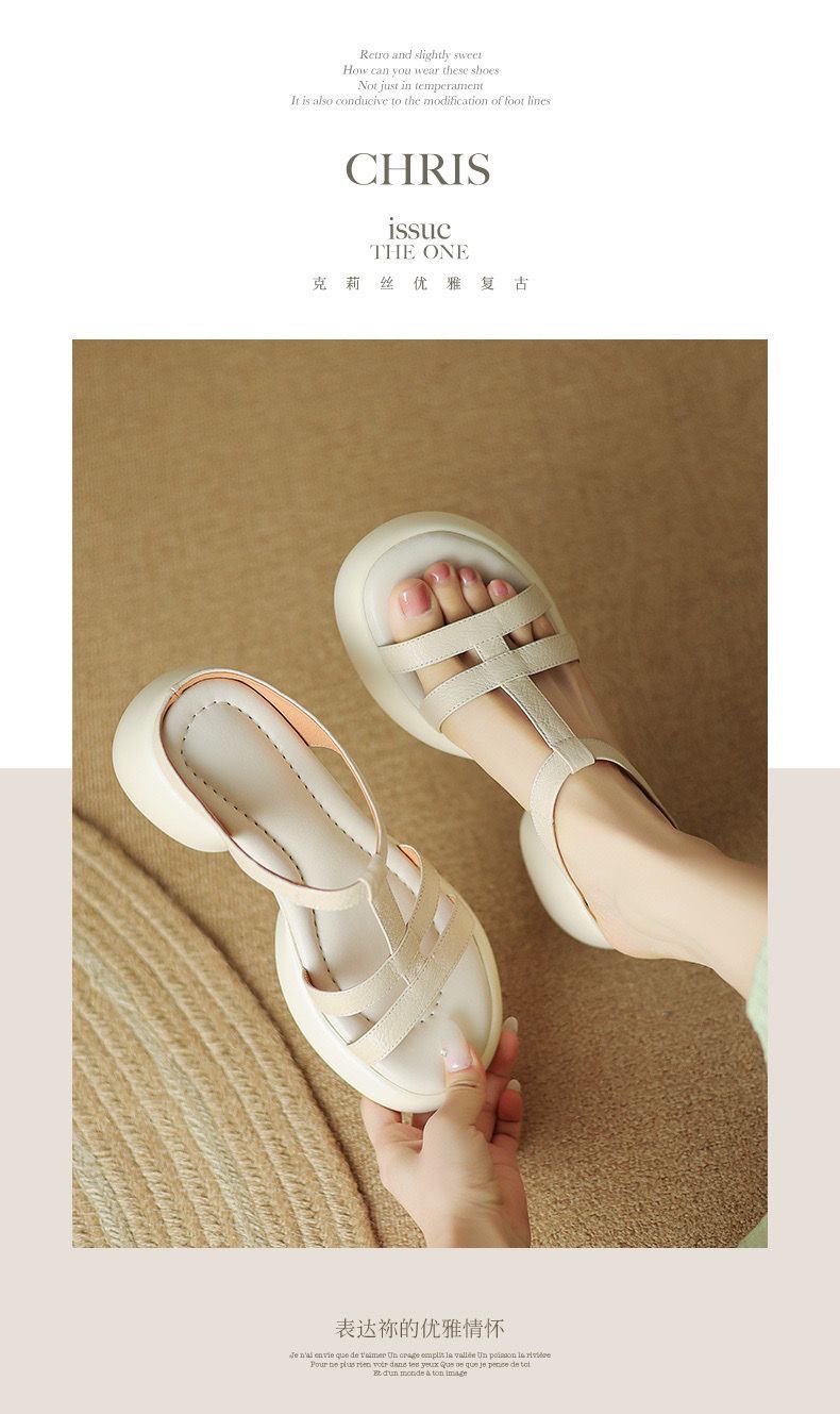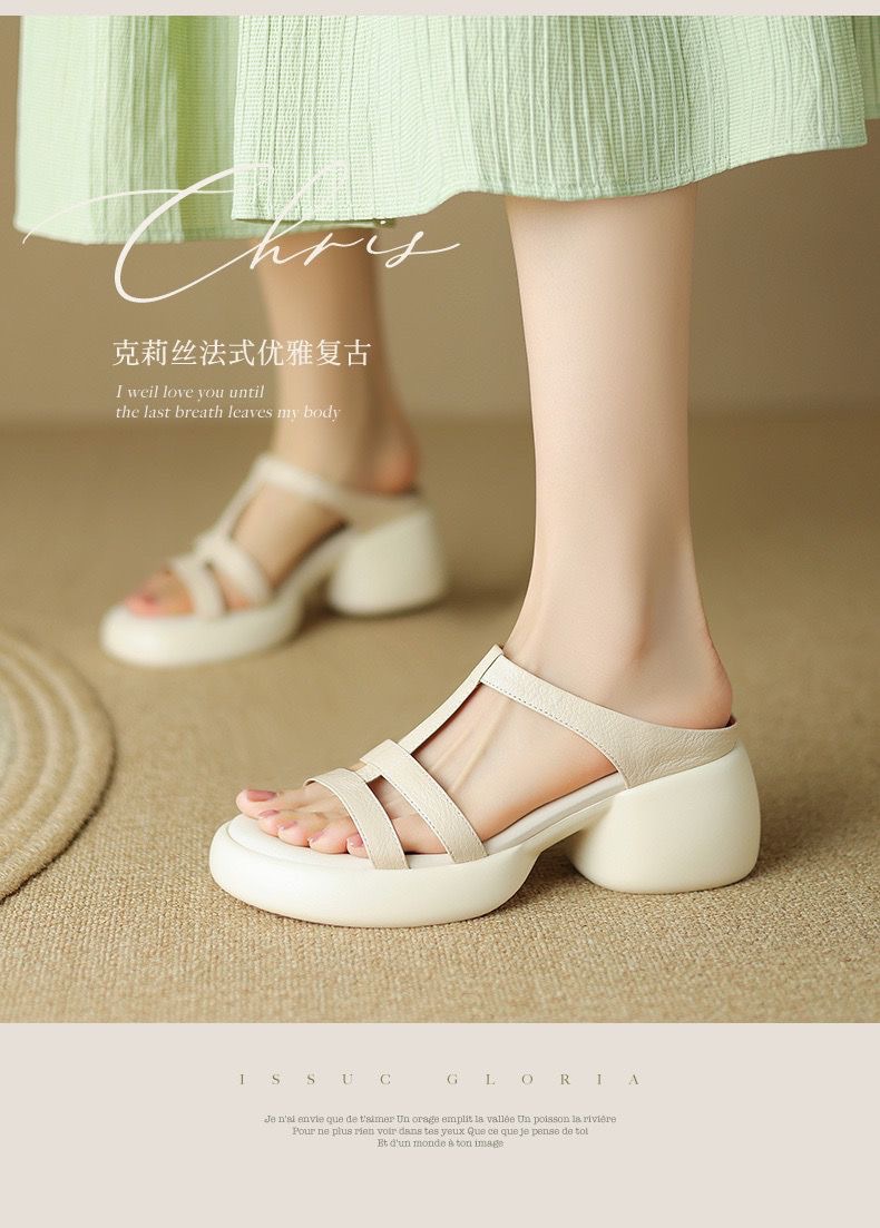 여성을위한 부드러운 가죽 하이힐 신발 여름 새로운 부드러운 밑창 플랫폼 두꺼운 밑창 오픈 발가락 두꺼운 뒤꿈치 샌들 통기성 스타일