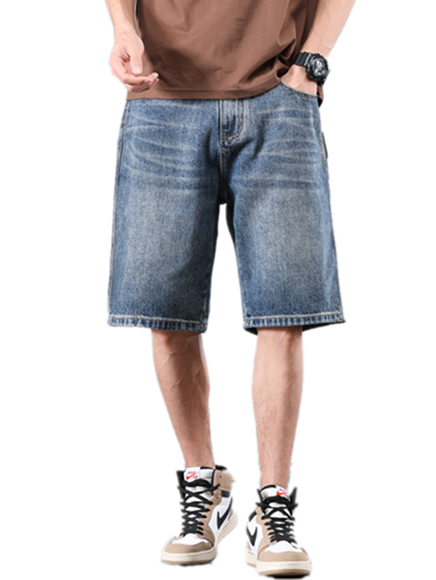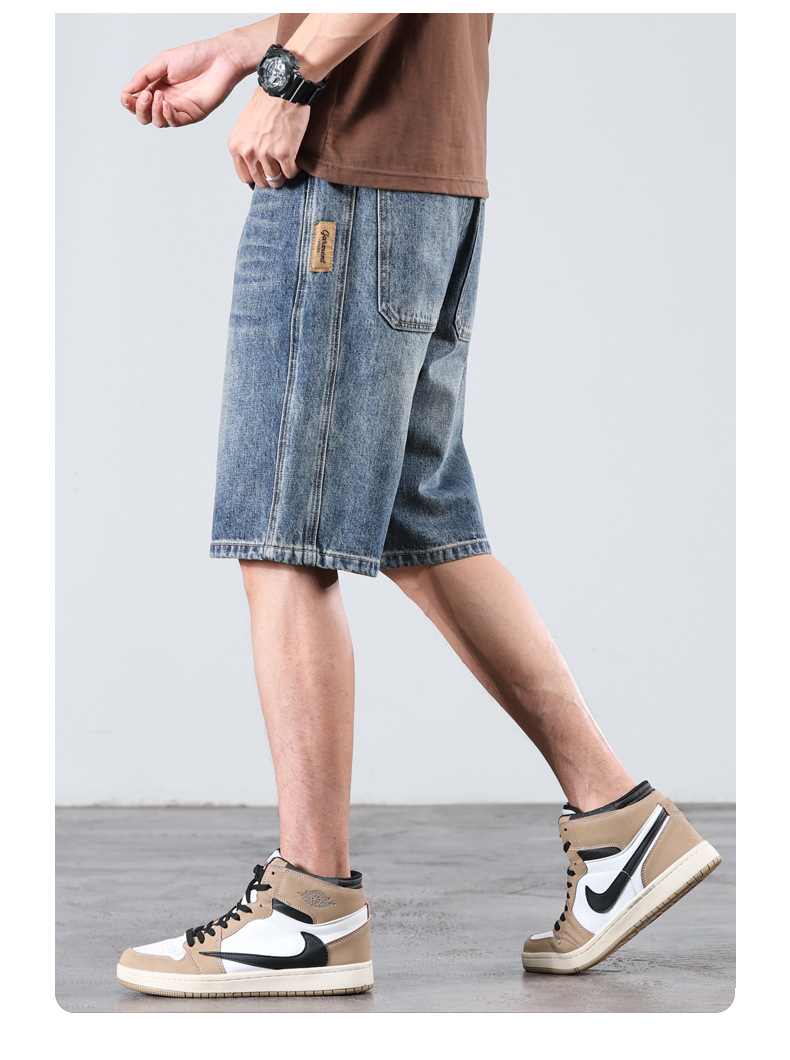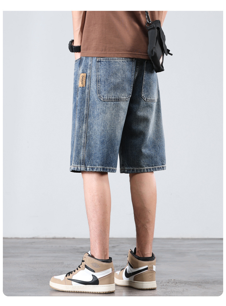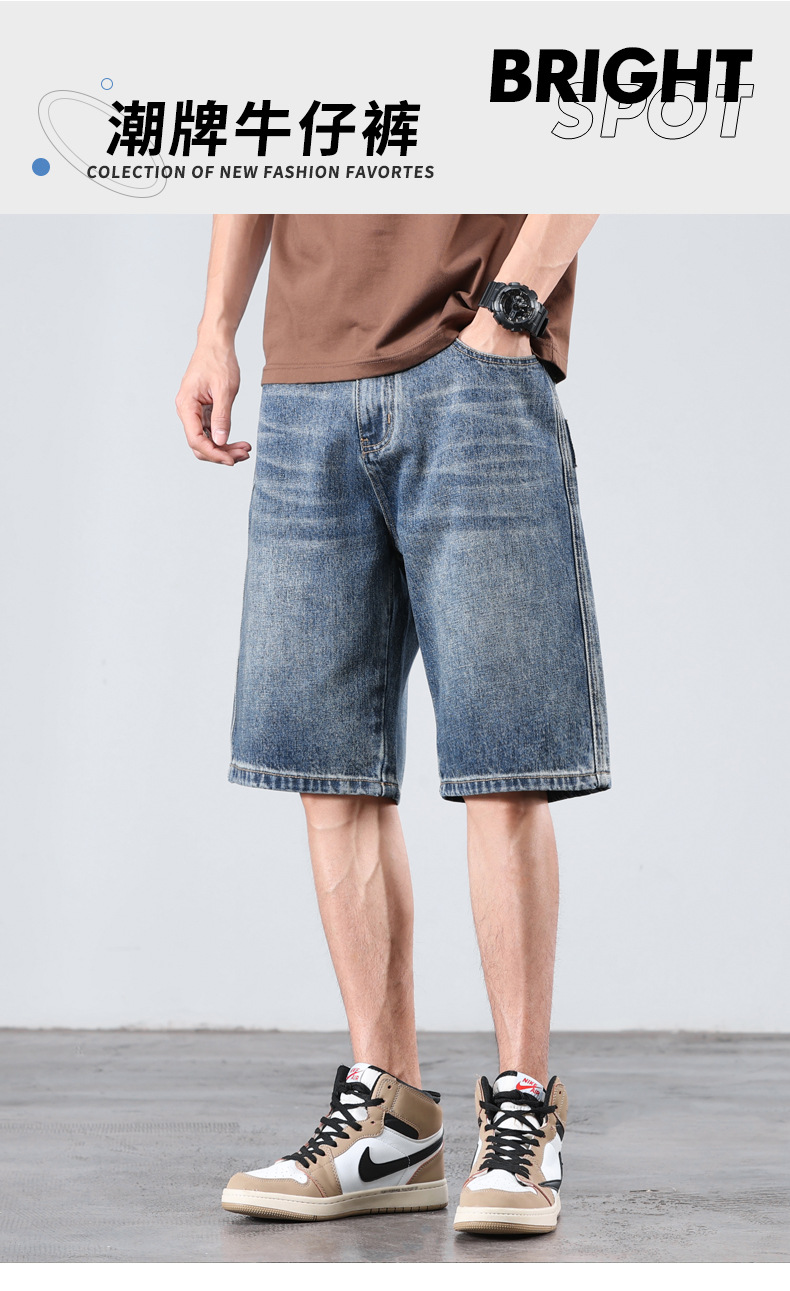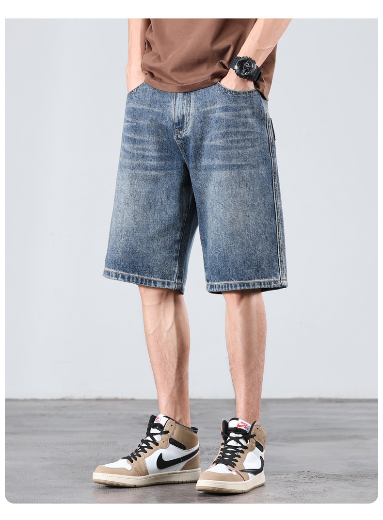 세탁 된 올드 데님 반바지 남자 2024 년 여름 새로운 스트레이트 루즈 유행 브랜드 올 매치 캐주얼 5 점 바지스토어 가기