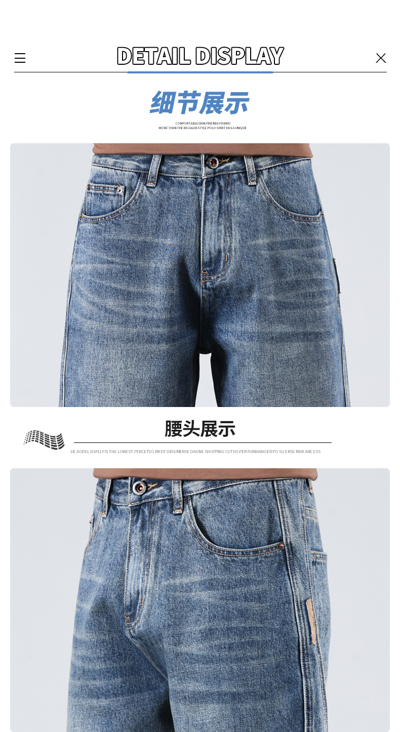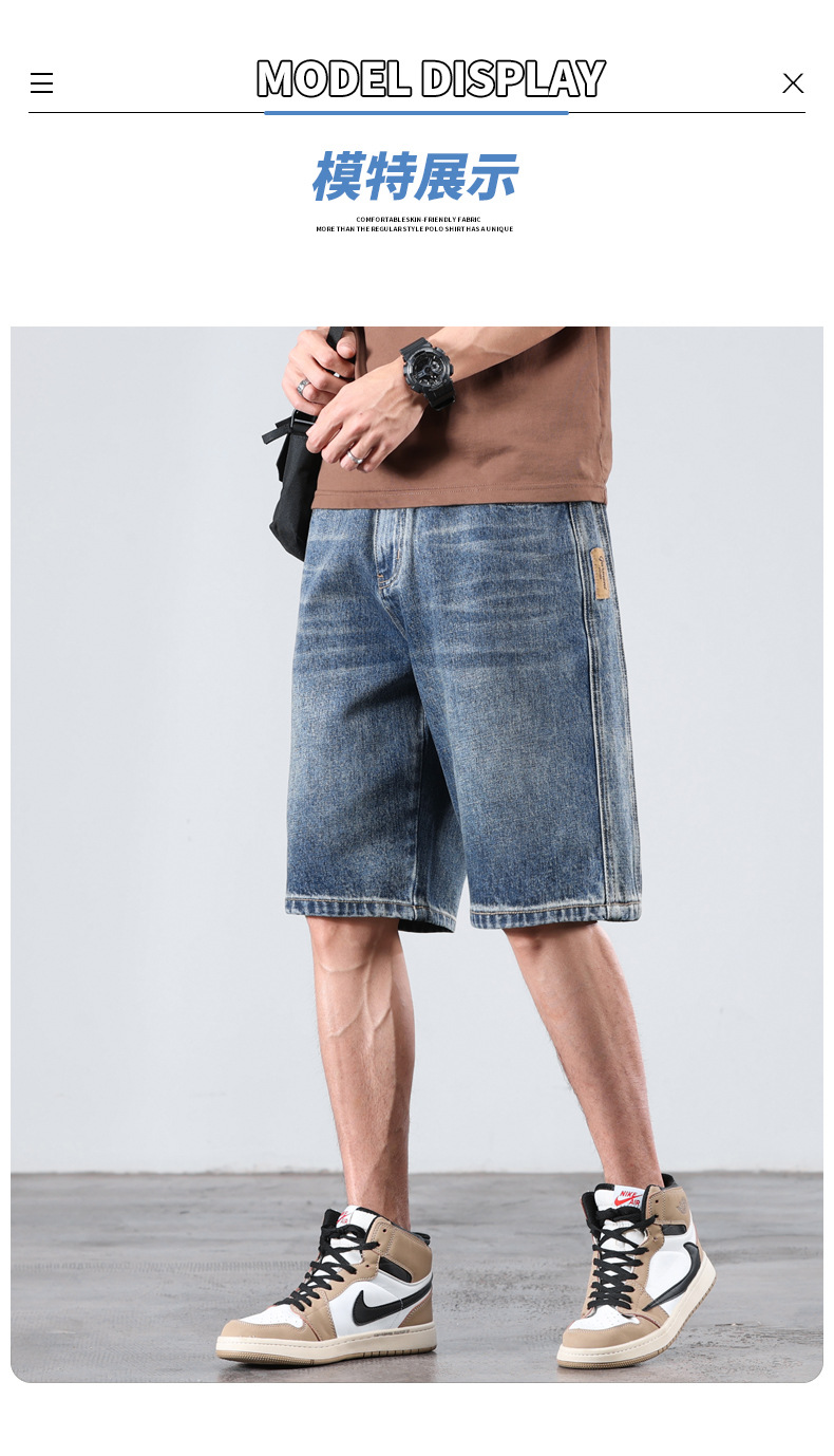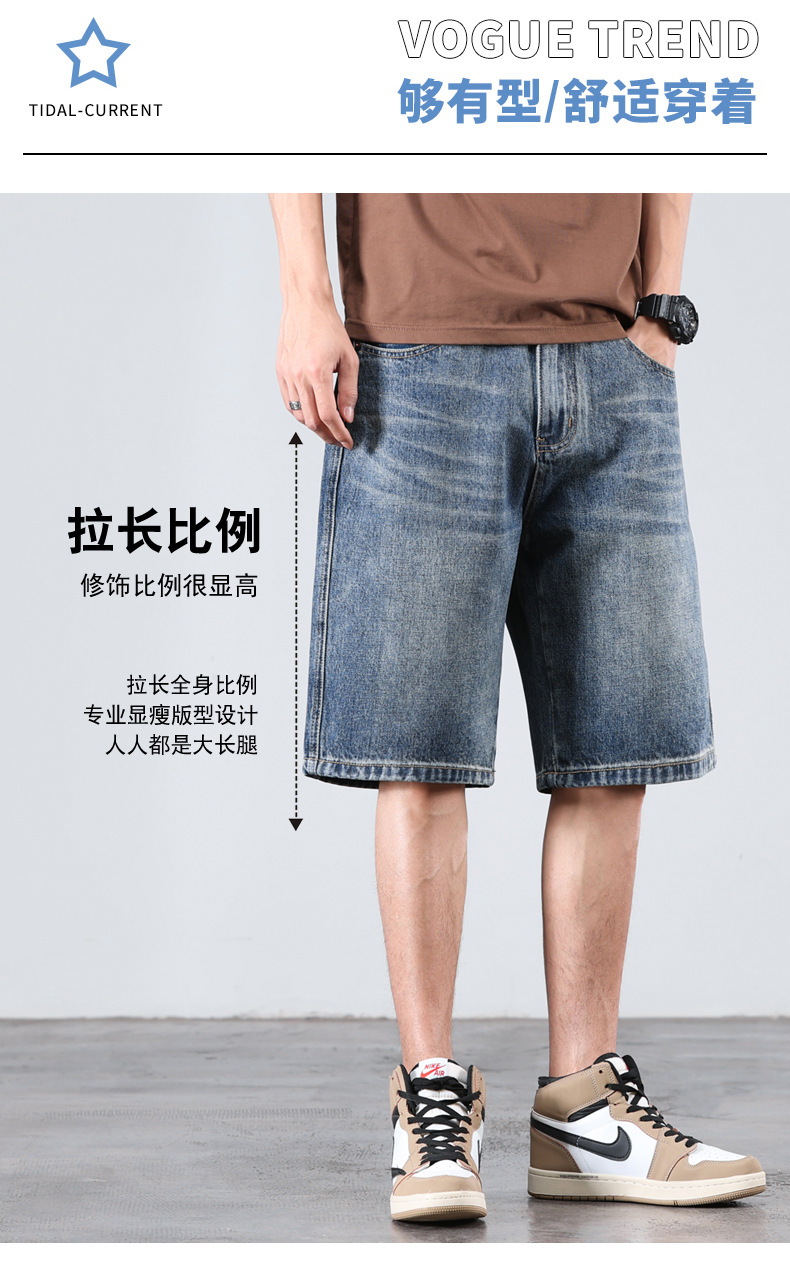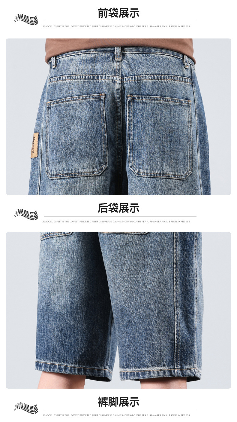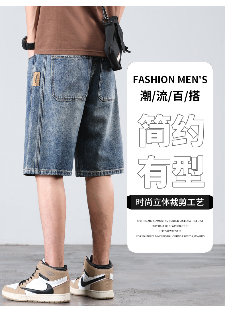 세탁 된 올드 데님 반바지 남자 2024 년 여름 새로운 스트레이트 루즈 유행 브랜드 올 매치 캐주얼 5 점 바지스토어 가기