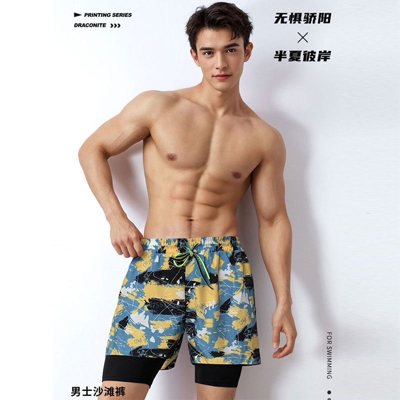 극도로 젊은 남자 수영 트렁크 안티 당혹감 더블 레이어 수영 트렁크 느슨한 2024 새로운 수영복 세트 남성 온천 장비스토어 가기