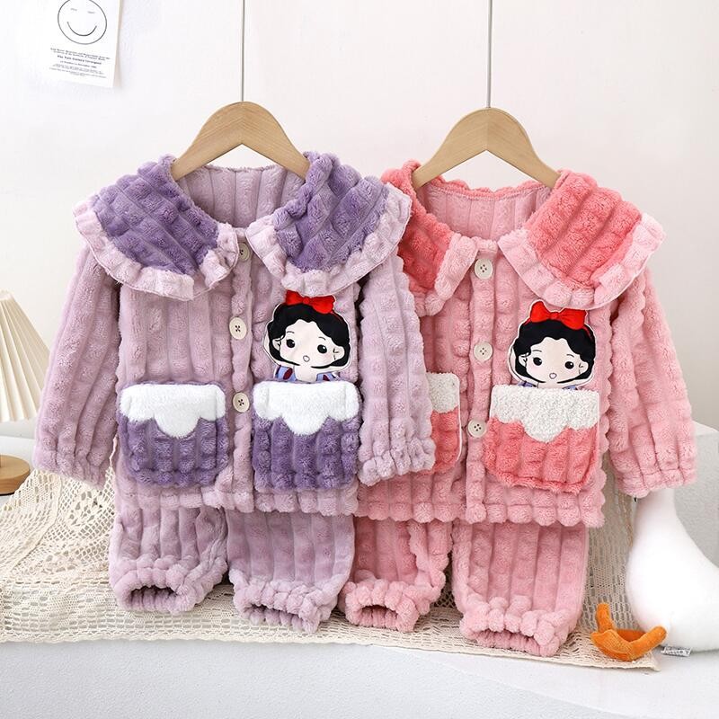 여아 양면 벨벳 홈웨어 세트 2025 가을 겨울 신상 여아 만화 귀여운 따뜻한 산호 벨벳 투피스 세트