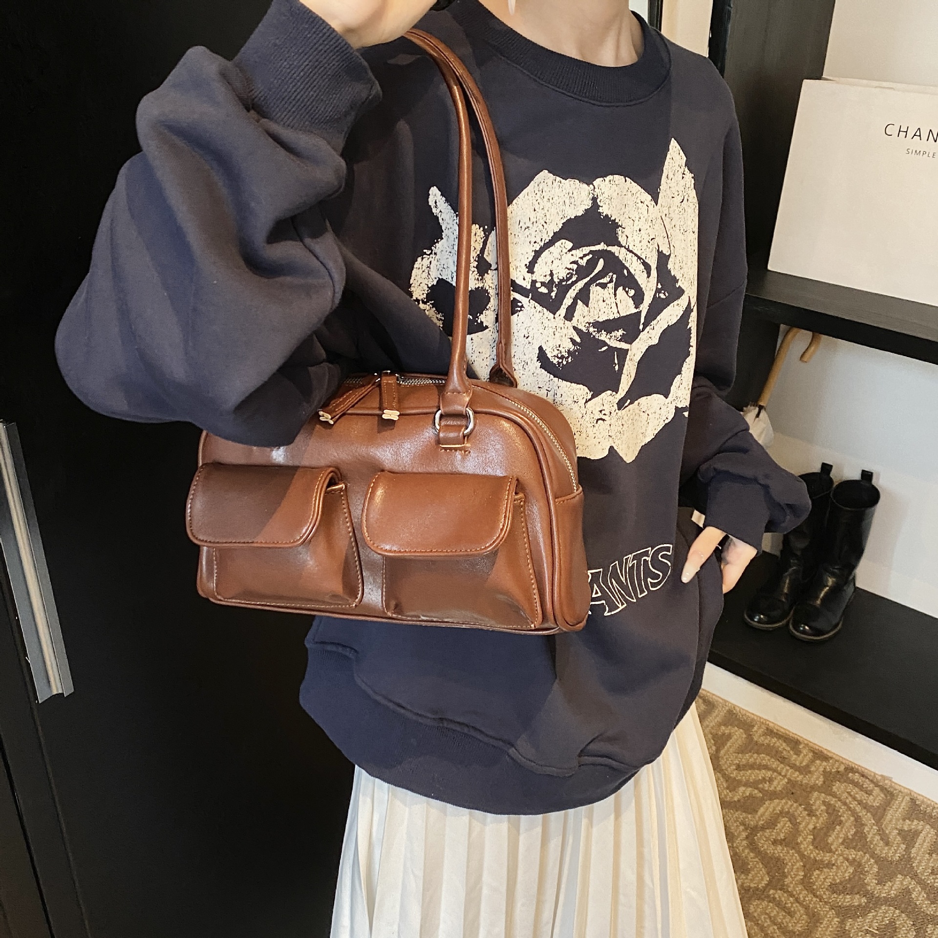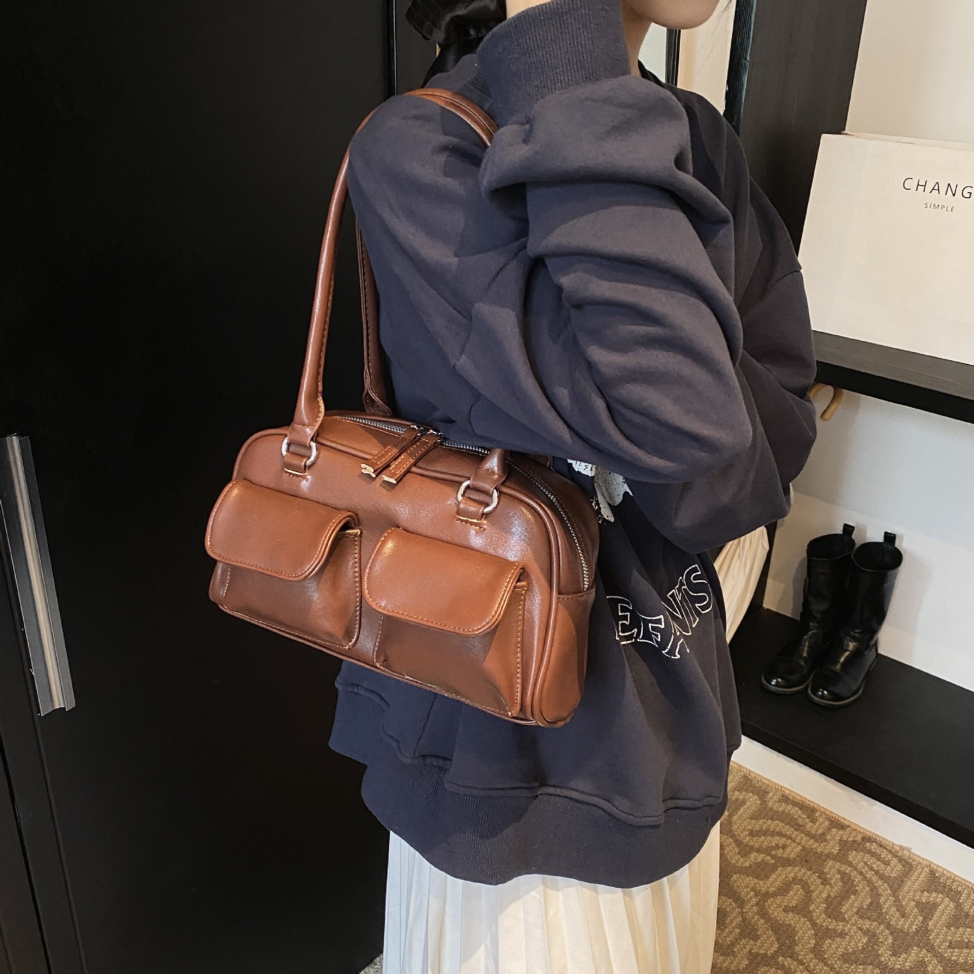 한국 스타일 트렌디 니치 디자인 언더암 베이켓 가방 여성 2025 년 여름 새 도착 어깨 보스턴 가방 볼링 백스토어 가기