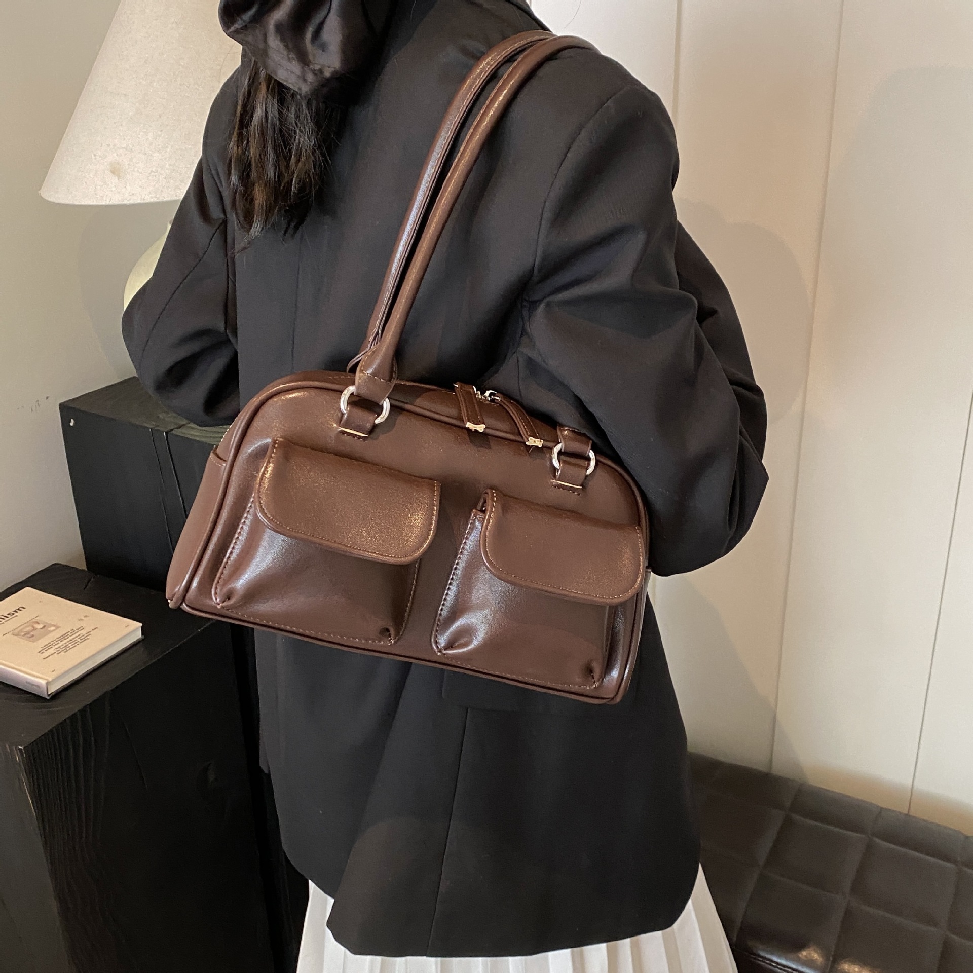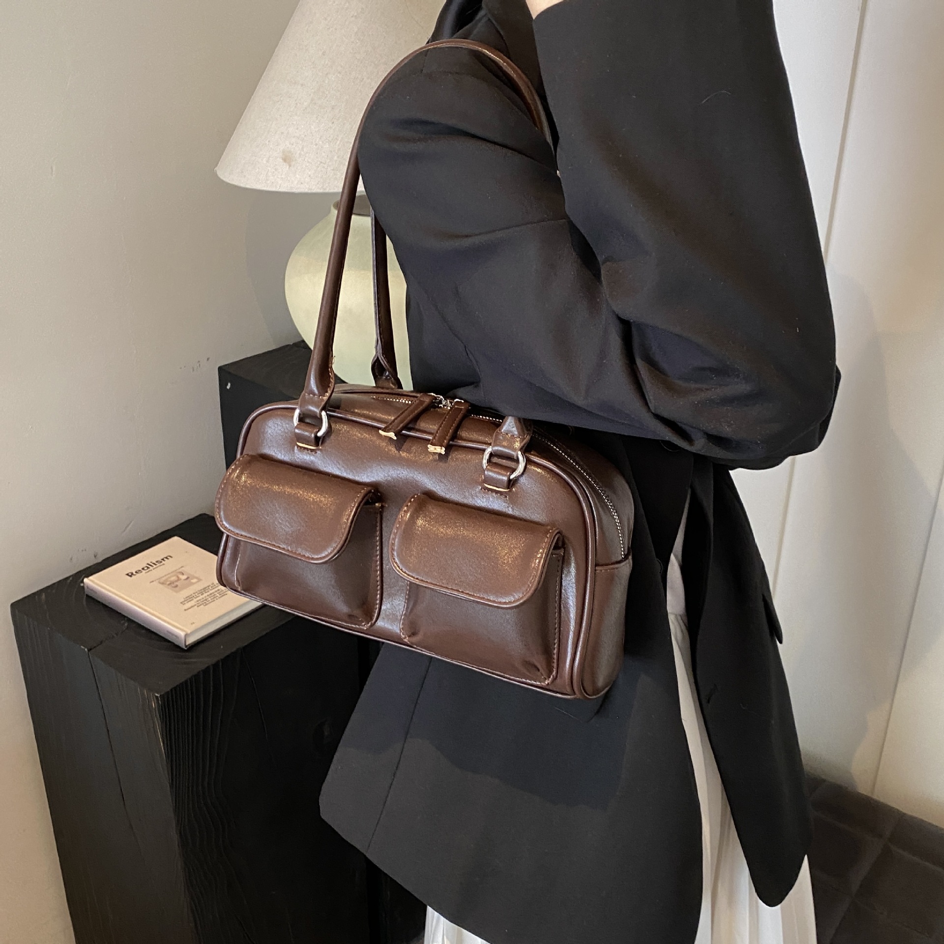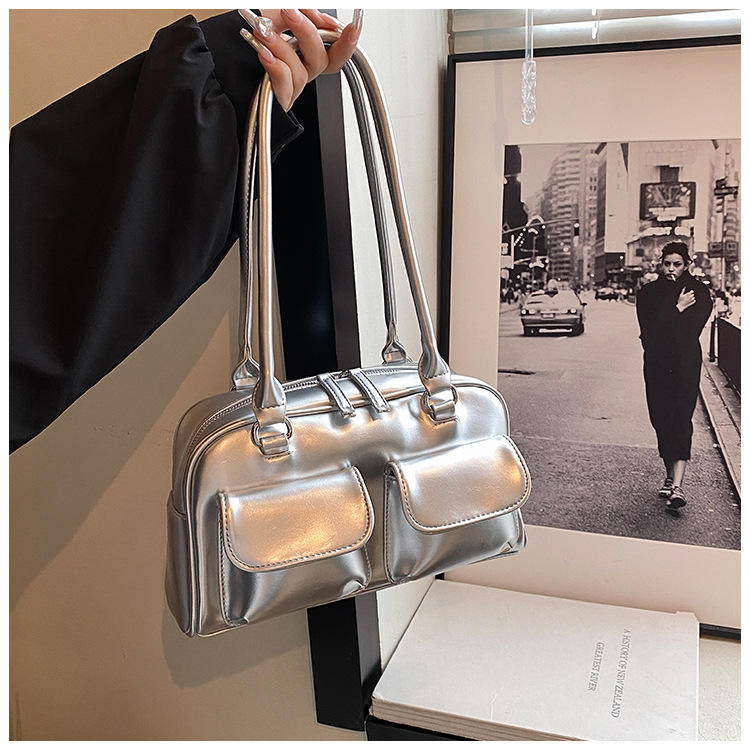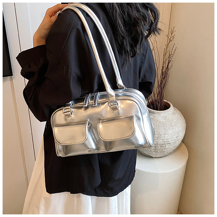 한국 스타일 트렌디 니치 디자인 언더암 베이켓 가방 여성 2025 년 여름 새 도착 어깨 보스턴 가방 볼링 백