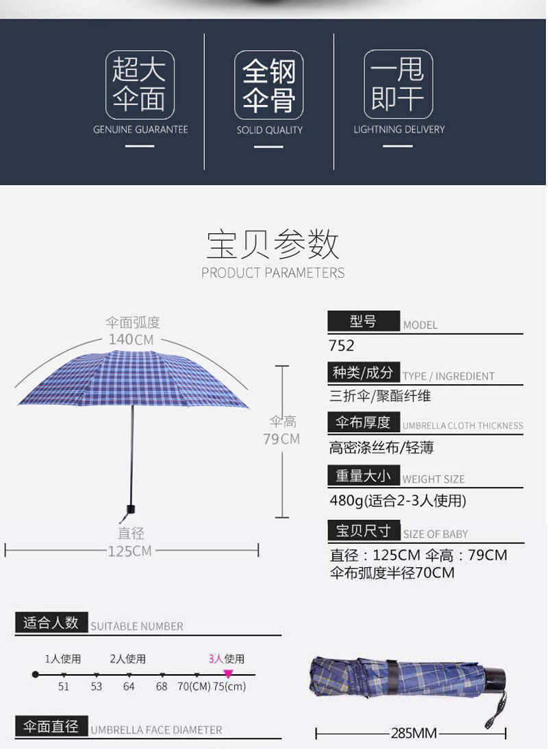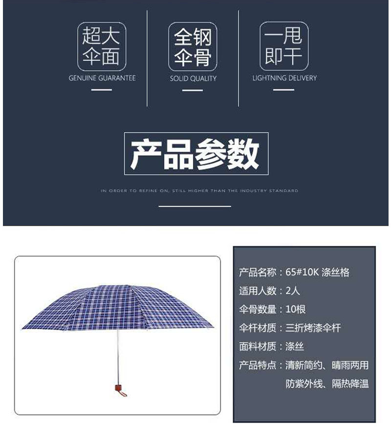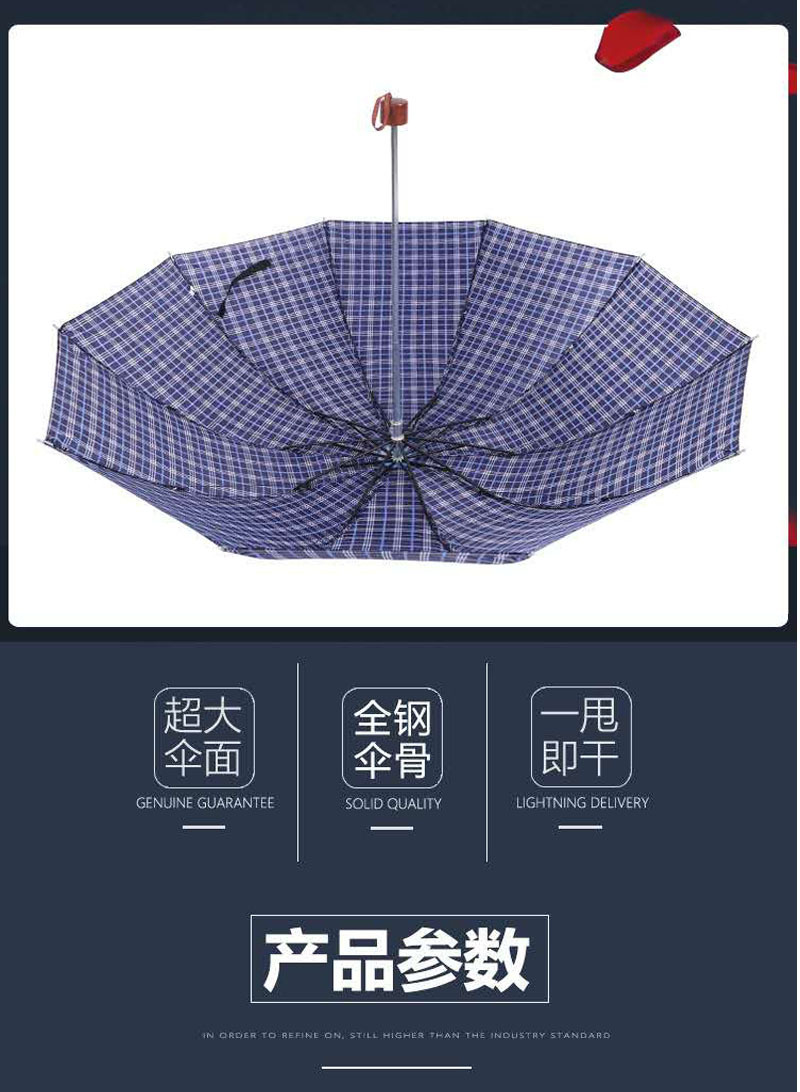 업그레이드 된 격자 무늬 우산 10 본 강화 UV 보호 양산 3 배 화창한 우산 선물 우산 도매