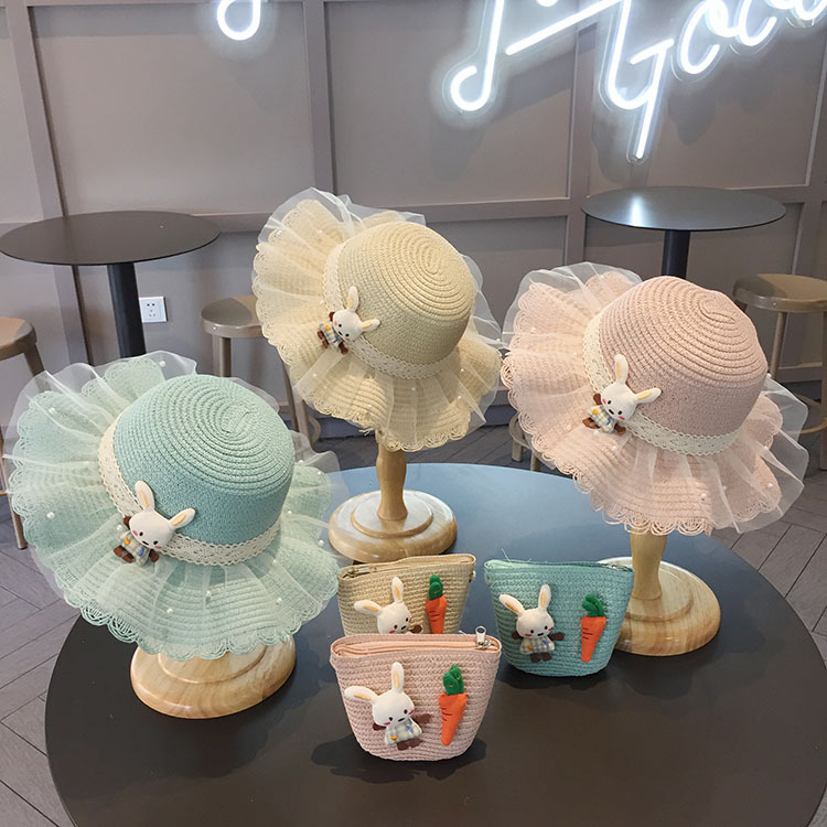 여름 어린 소녀 빅 브림 그늘 밀짚 모자 여성의 공주 바람 해변 선 스크린 어부 모자 어린이 모자 가방스토어 가기