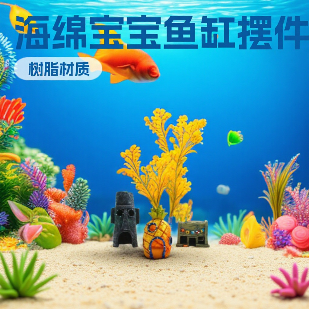 추천 수족관 물고기 탱크 풍경 장식 수중 세계 스폰지 밥 만화 수지 물고기와 새우 탈출 집스토어 가기