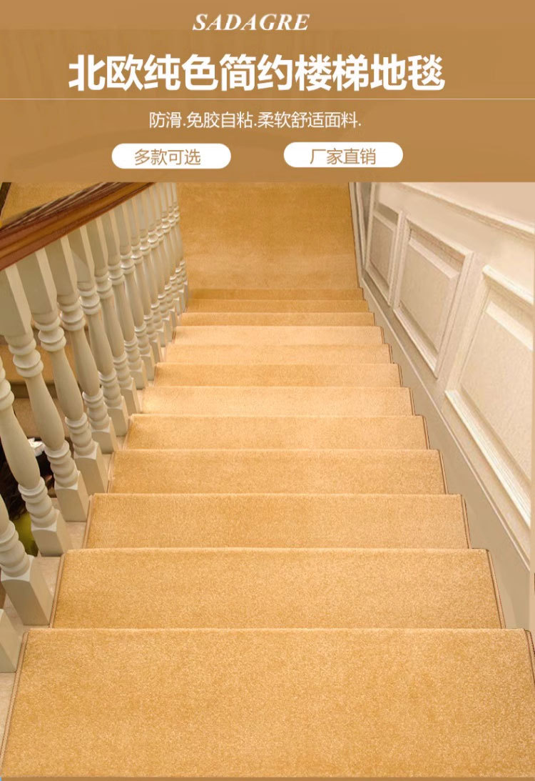 단색 심플 계단 매트 듀플렉스 솔리드 우드 풋 매트 접착제가없는 셀프 접착 비 슬립 가정용 카펫 로터리 두꺼운 그레이스토어 가기