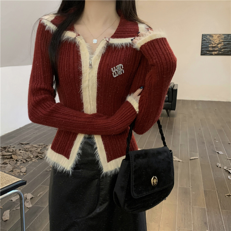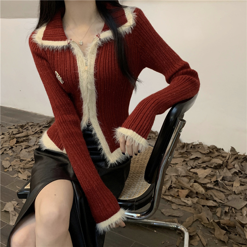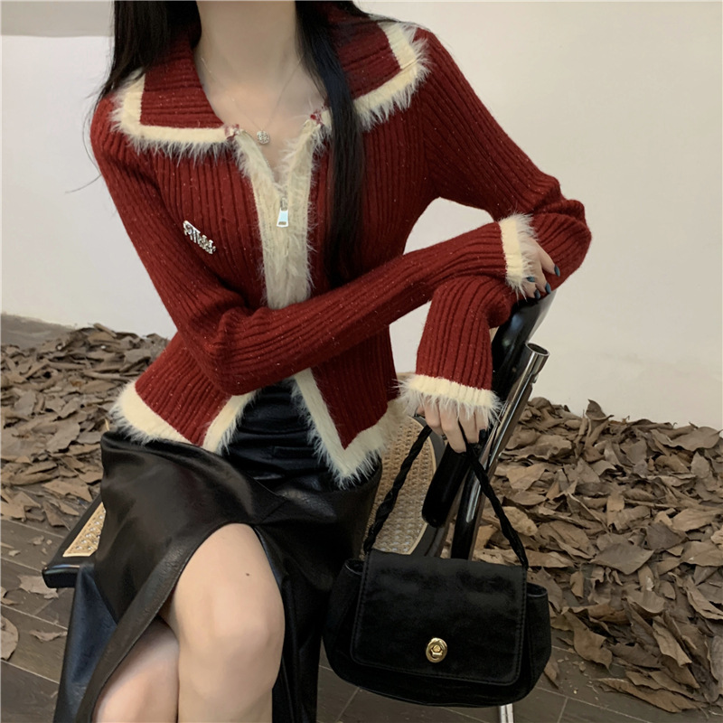 가을 겨울 신상 크리스마스룩 레드 분위기 니트 가디건 여성 슬림핏 스웨터 코트 숏탑