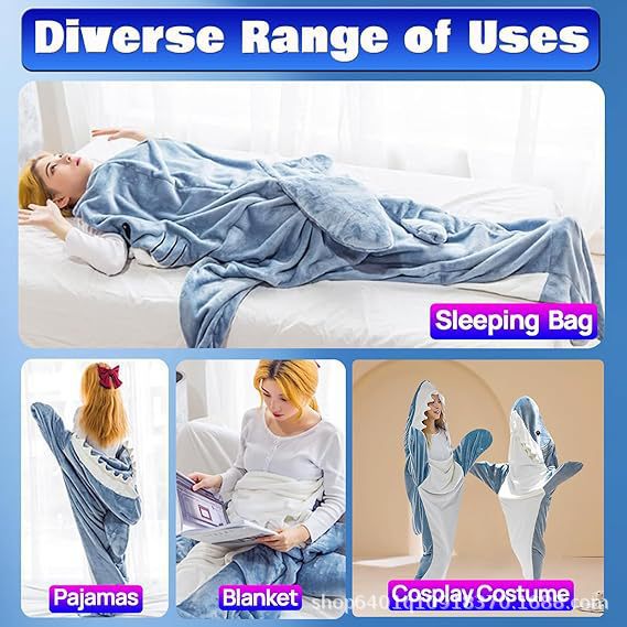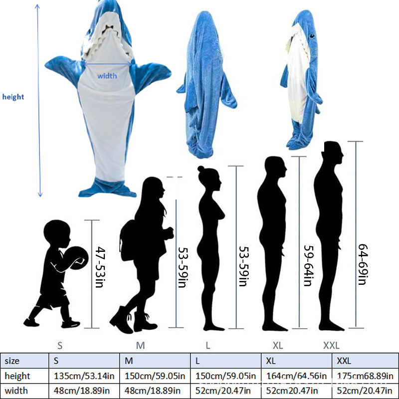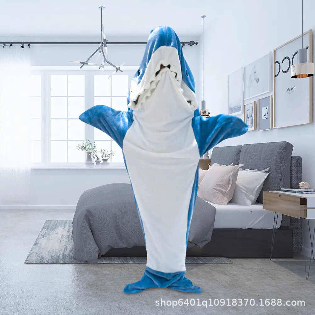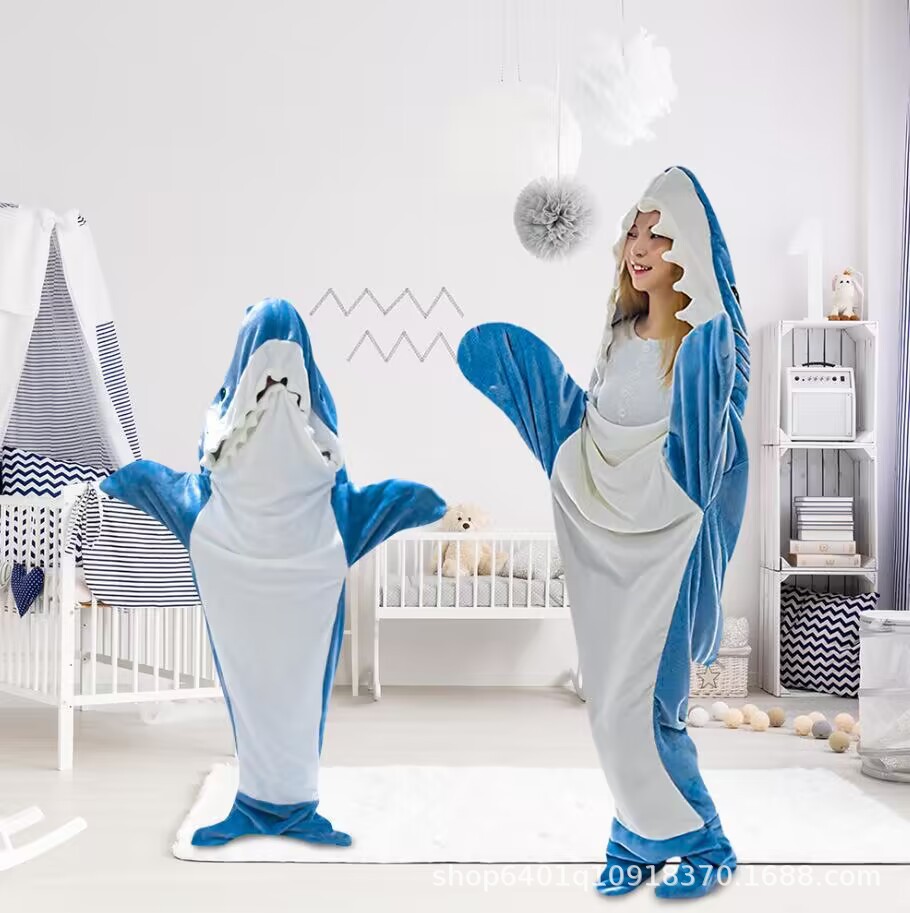 상어 슬리핑 백 만화 모래 조각 슬리퍼 크리스탈 벨벳 상어 담요 파자마 느슨한 후드 홈 옷스토어 가기