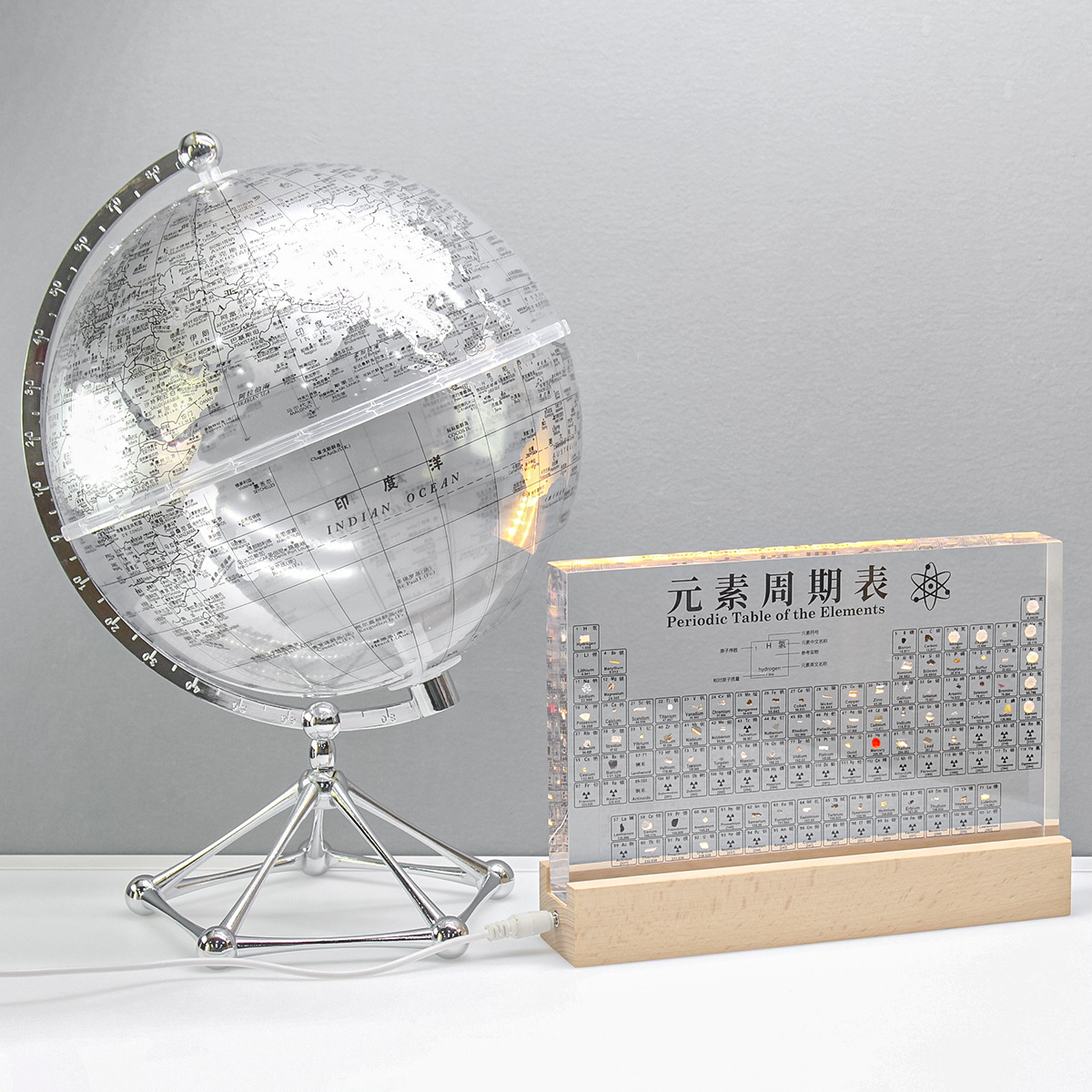 • 중영 이중 언어 [83가지 요소 내장] 투명 모델 + USB 조명 받침대 + 컬러 지구본