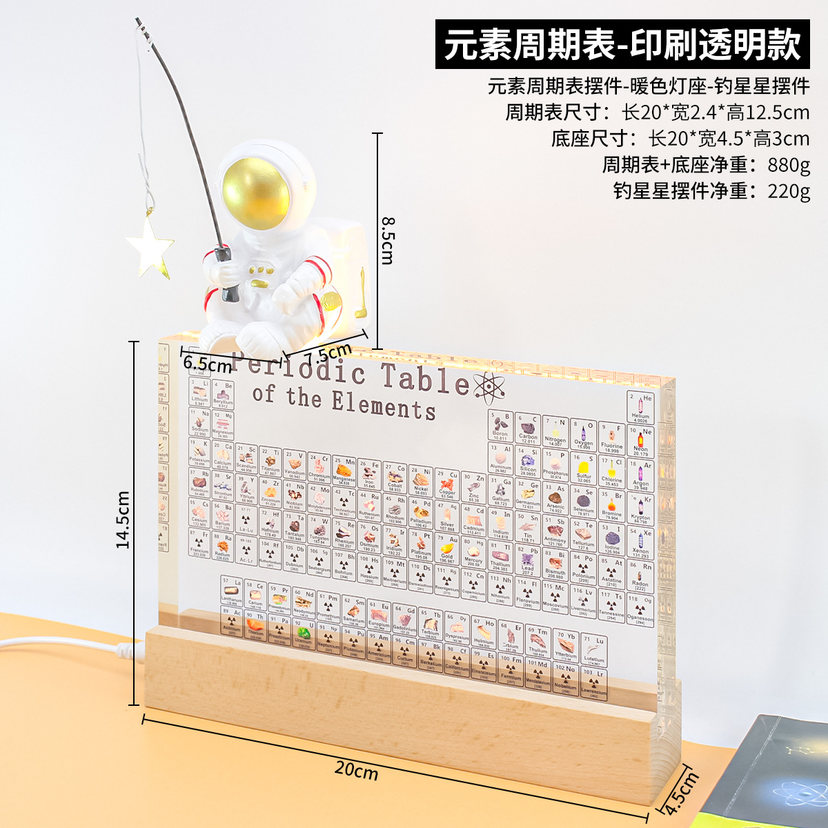 • 중국어-영어 이중 언어 [83개 요소 내장] 투명 모델 + 조명이 있는 USB 베이스 + 좌석 달 낚시 별 우주 비행사