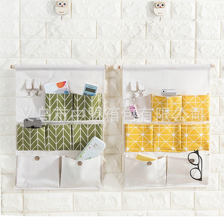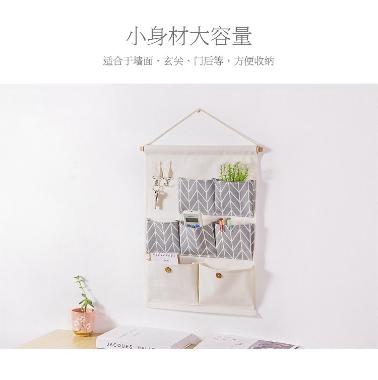 ZMXB577-storage 7 개의 주머니 저장 가방 면화 린넨 방수 잡다한 교수형 가방 열쇠 직물 교수형 가방 인쇄 로고