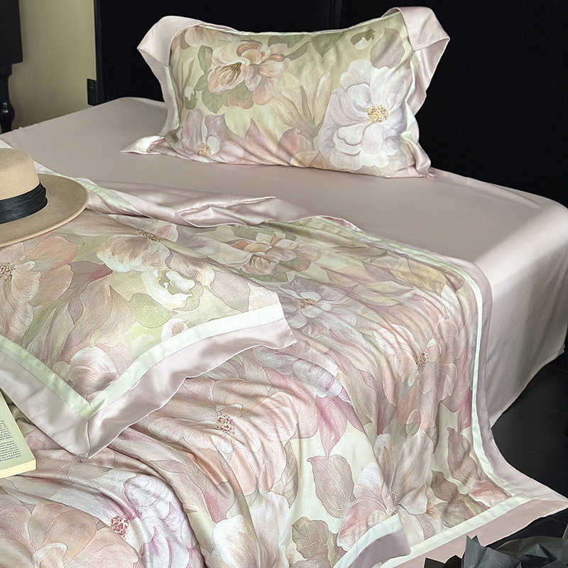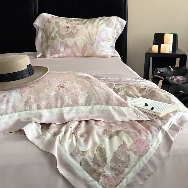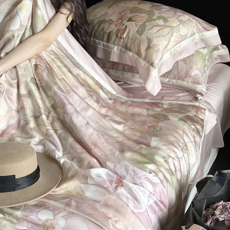 여름 기계 세탁기 60 란징 텐셀 여름 시원한 이불 4 조각 슈퍼 소프트 아이스 실크 싱글 더블 얇은 에어컨 이불스토어 가기
