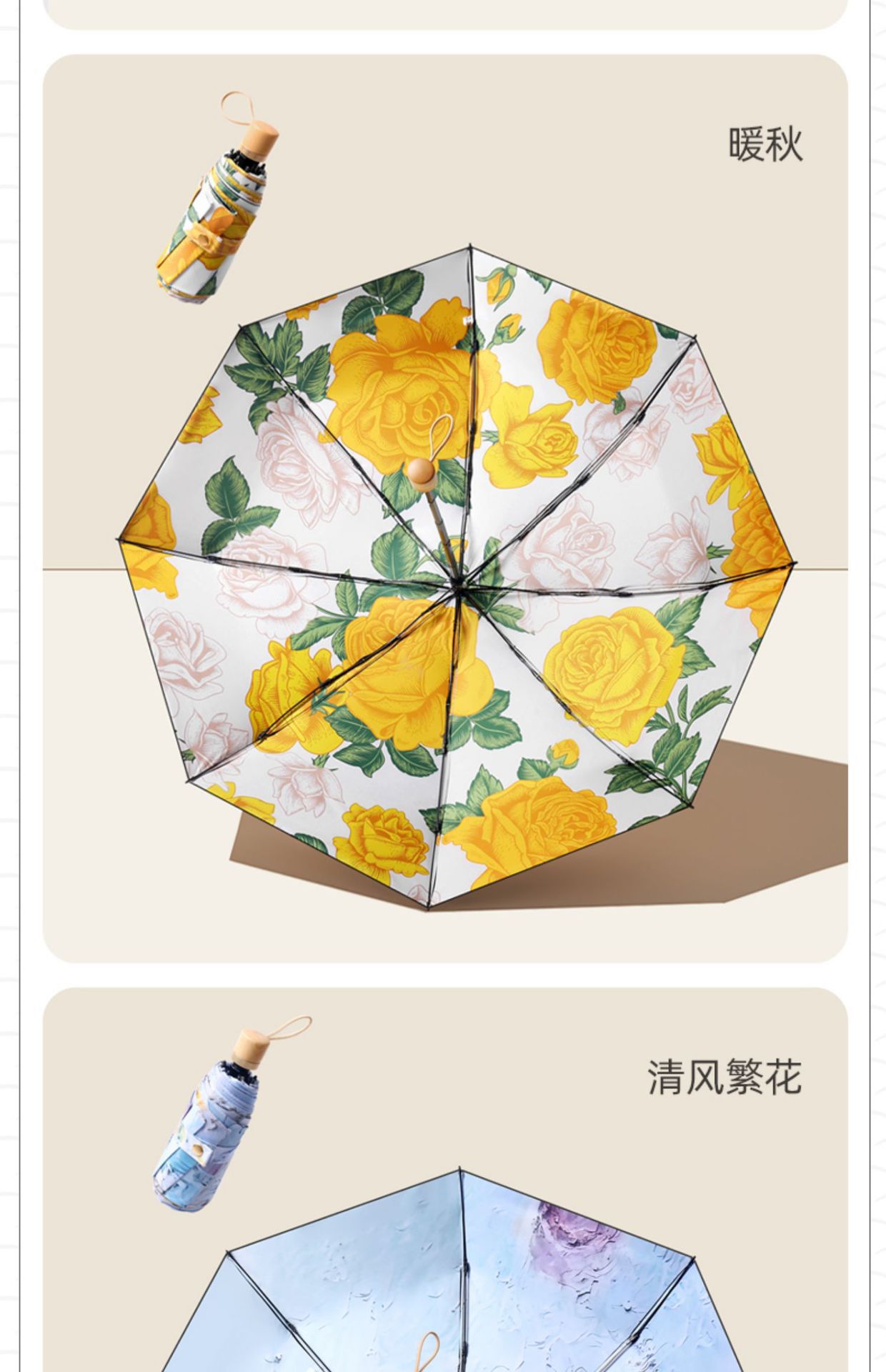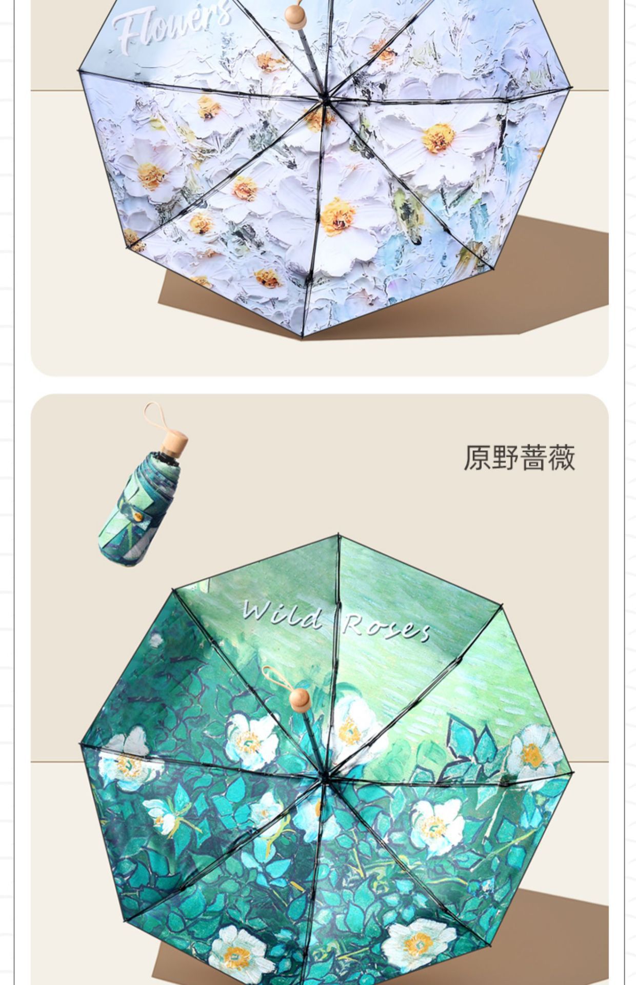 더블 레이어 더블 플라워 태양 우산 여성 일러스트 손으로 그린 스타일 작고 편리한 5 배 이중 목적 햇살과 선 스크린 우산