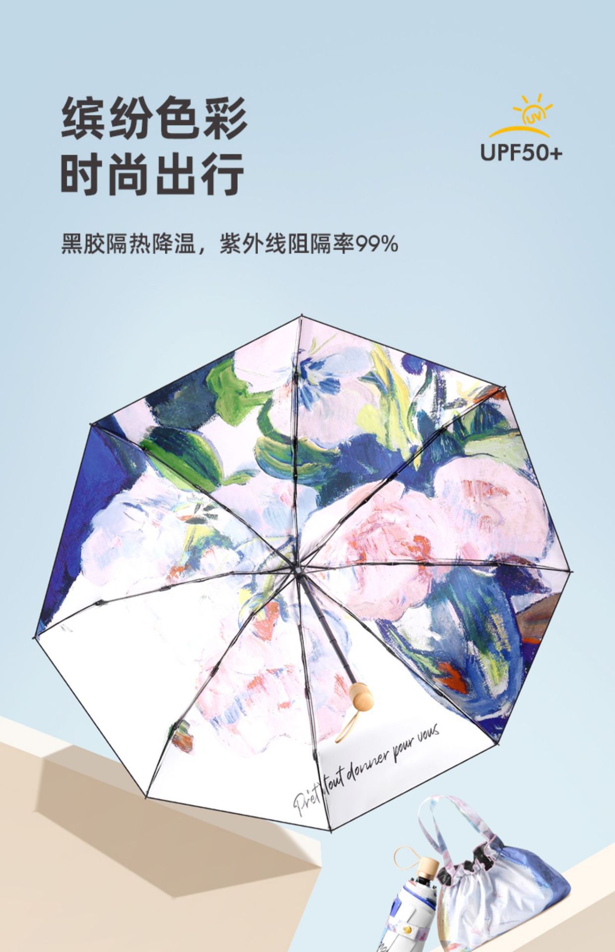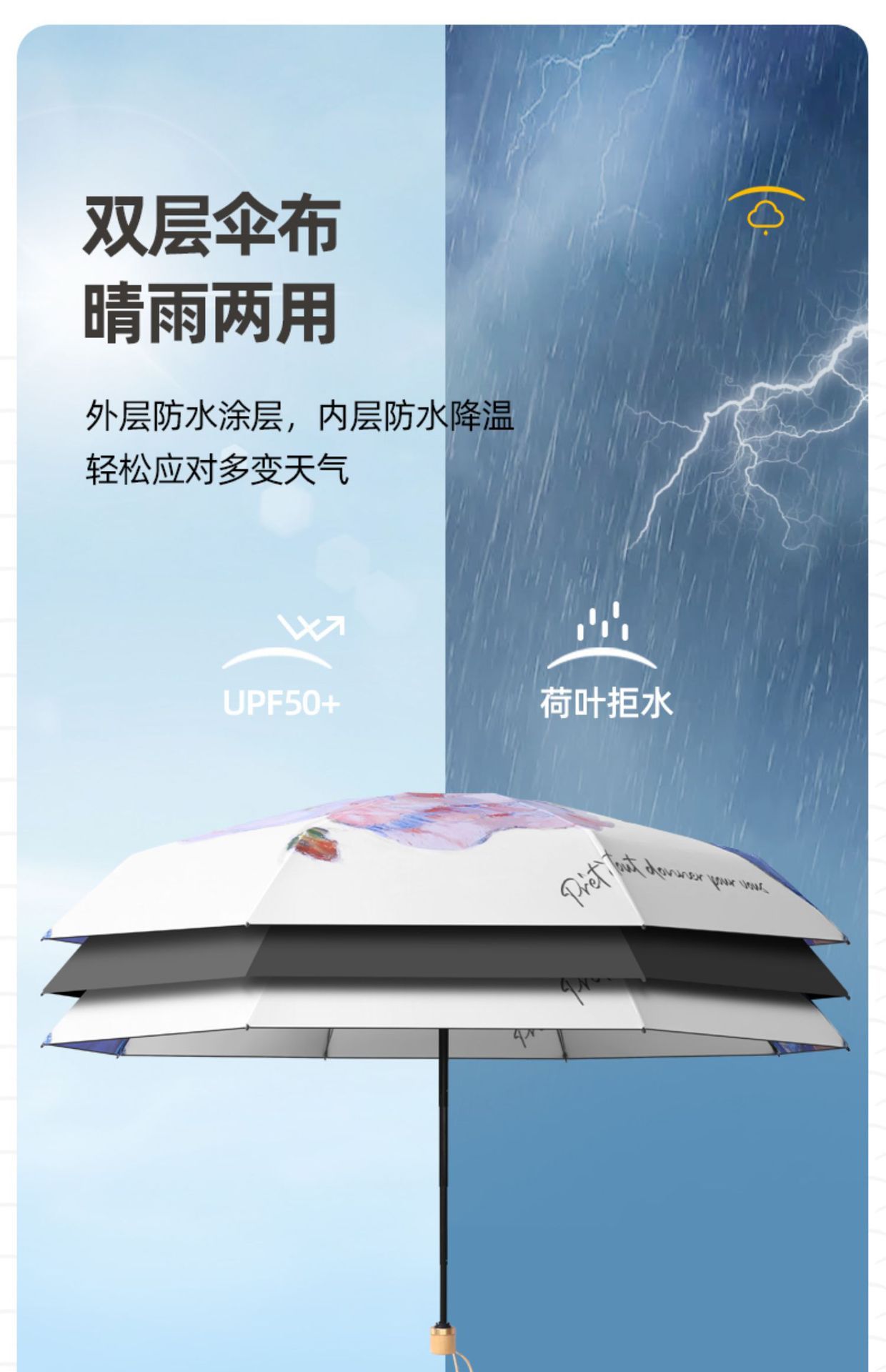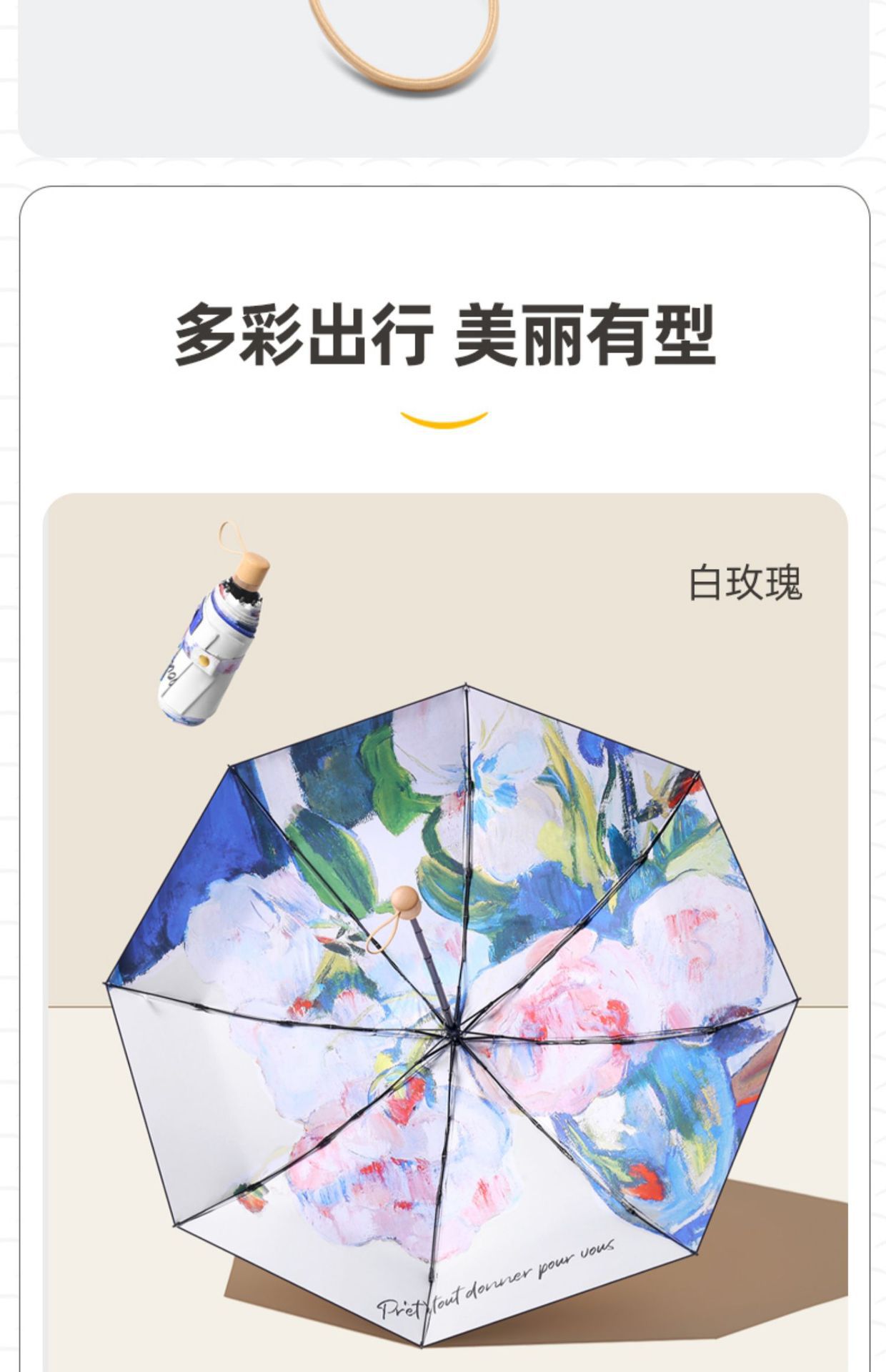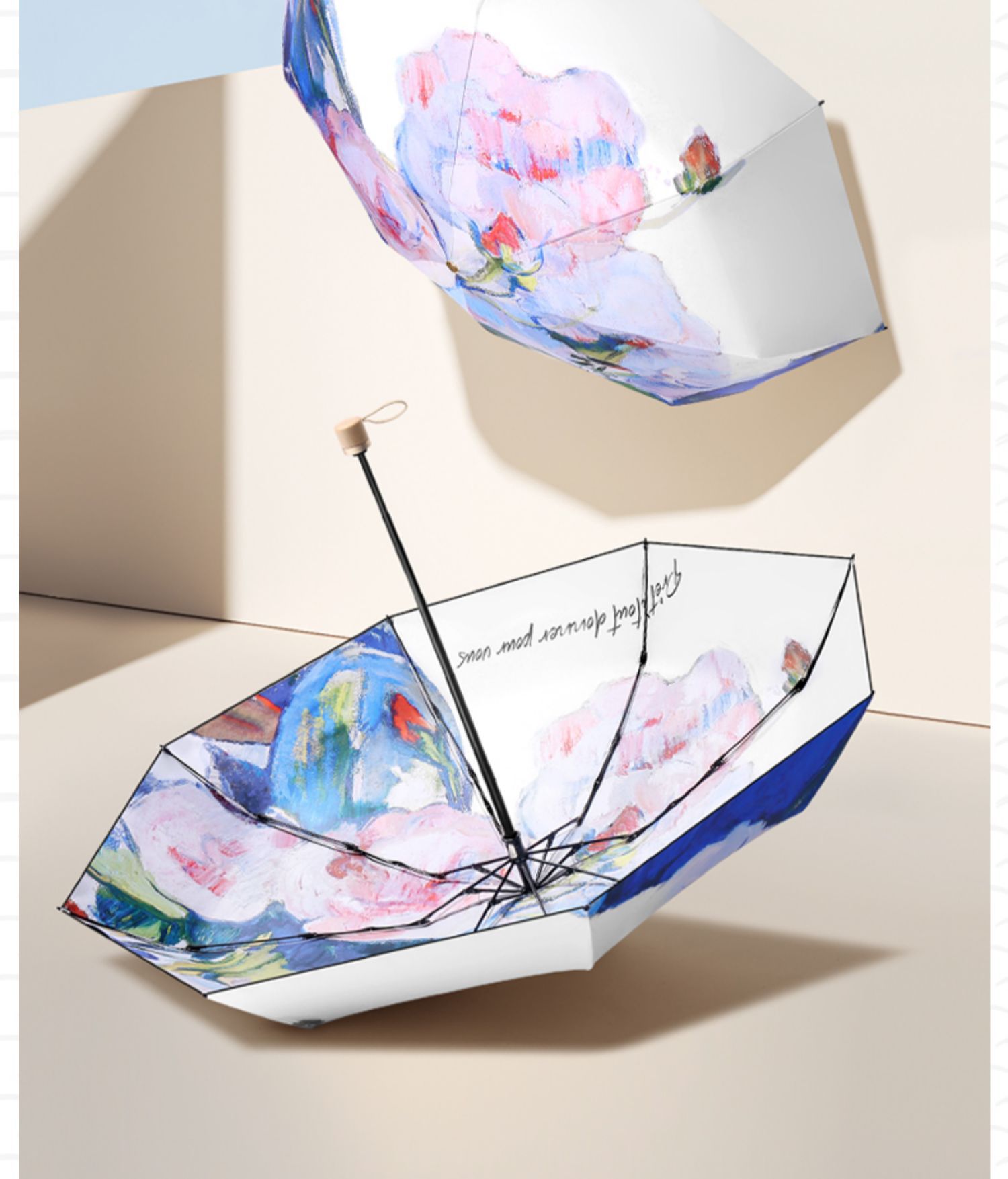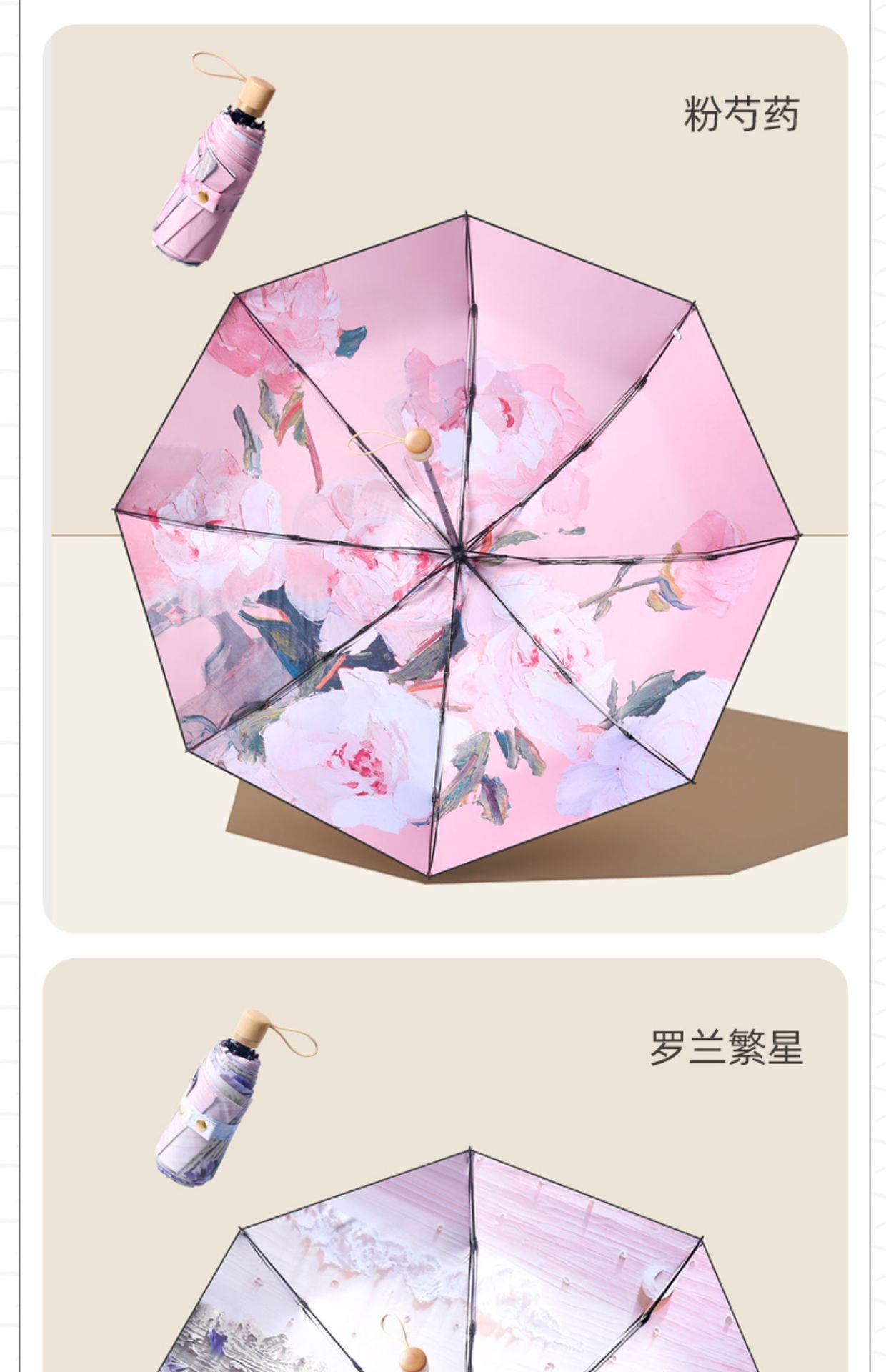 더블 레이어 더블 플라워 태양 우산 여성 일러스트 손으로 그린 스타일 작고 편리한 5 배 이중 목적 햇살과 선 스크린 우산스토어 가기