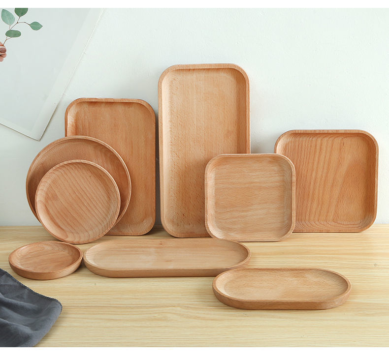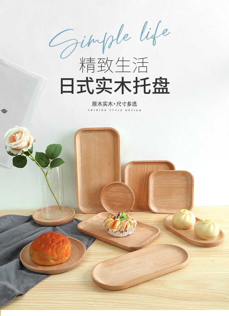 솔리드 우드 트레이 인 스타일 가정용 직사각형 라운드 일본 디너 플레이트 피자 나무 트레이 스테이크 나무 접시 티 트레이스토어 가기