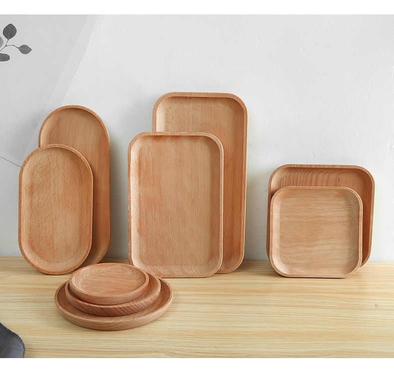 솔리드 우드 트레이 인 스타일 가정용 직사각형 라운드 일본 디너 플레이트 피자 나무 트레이 스테이크 나무 접시 티 트레이