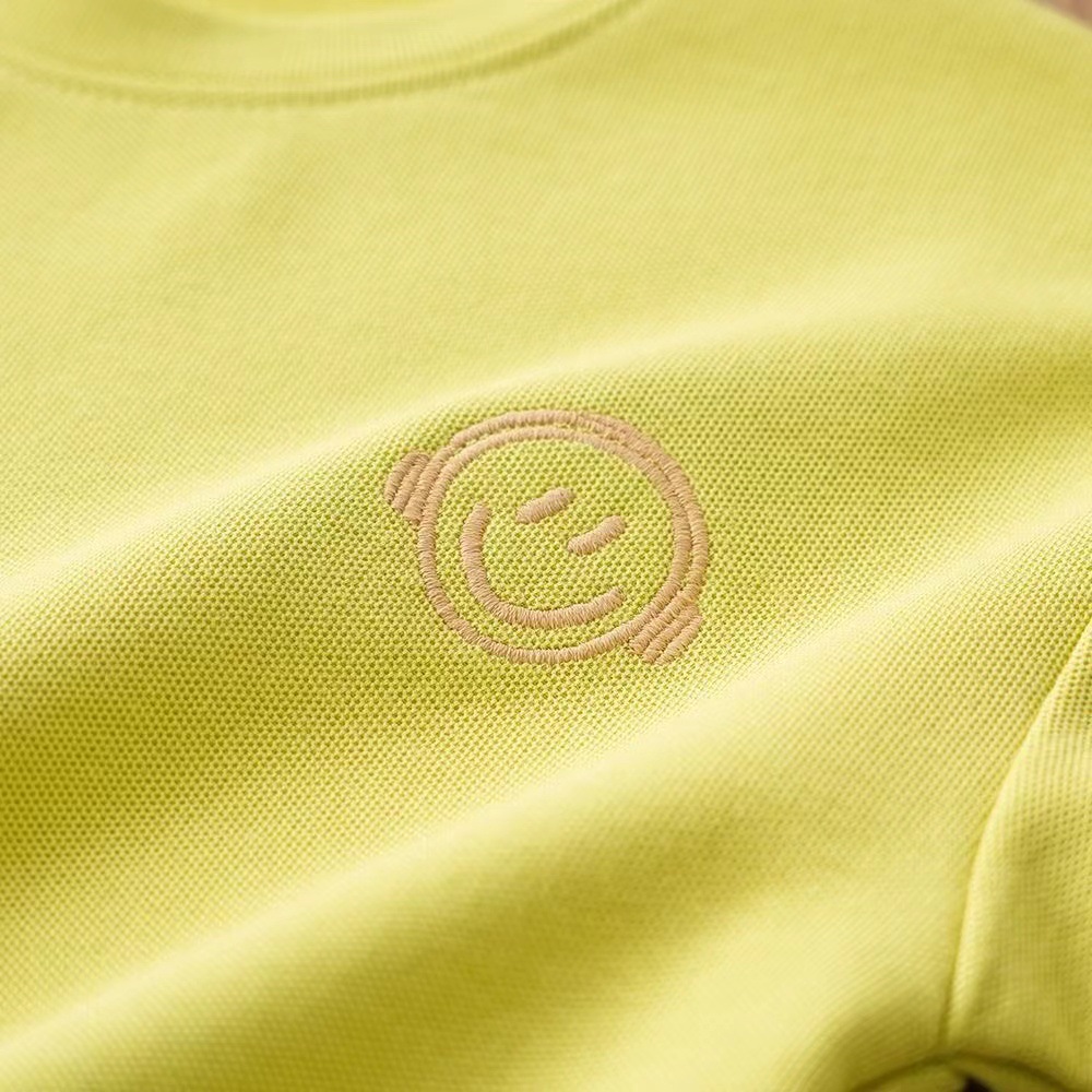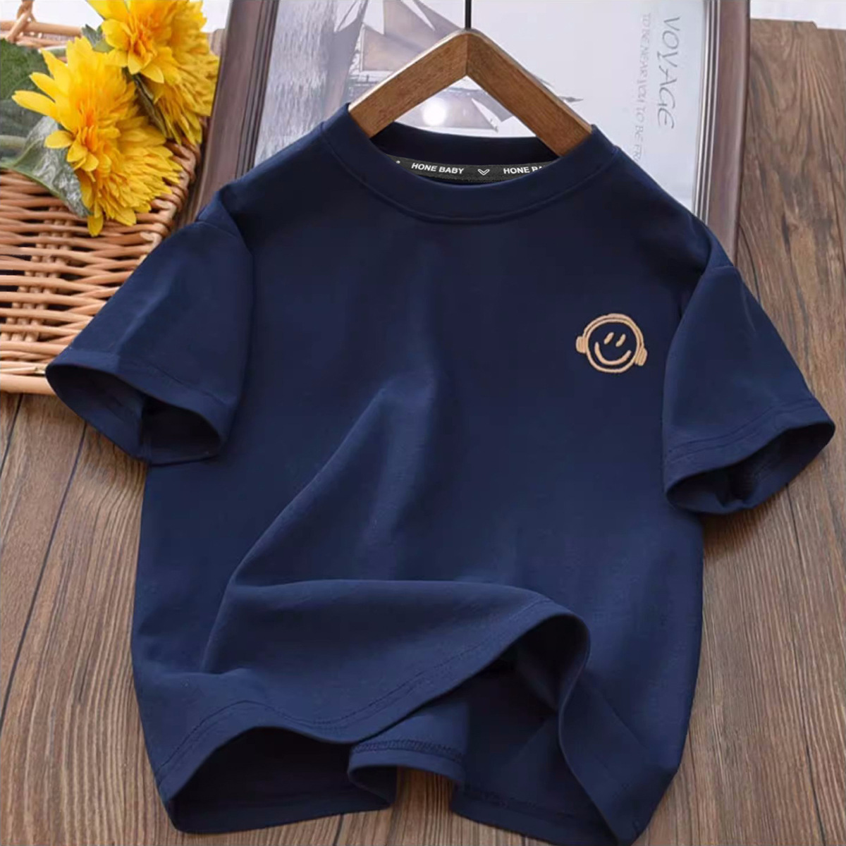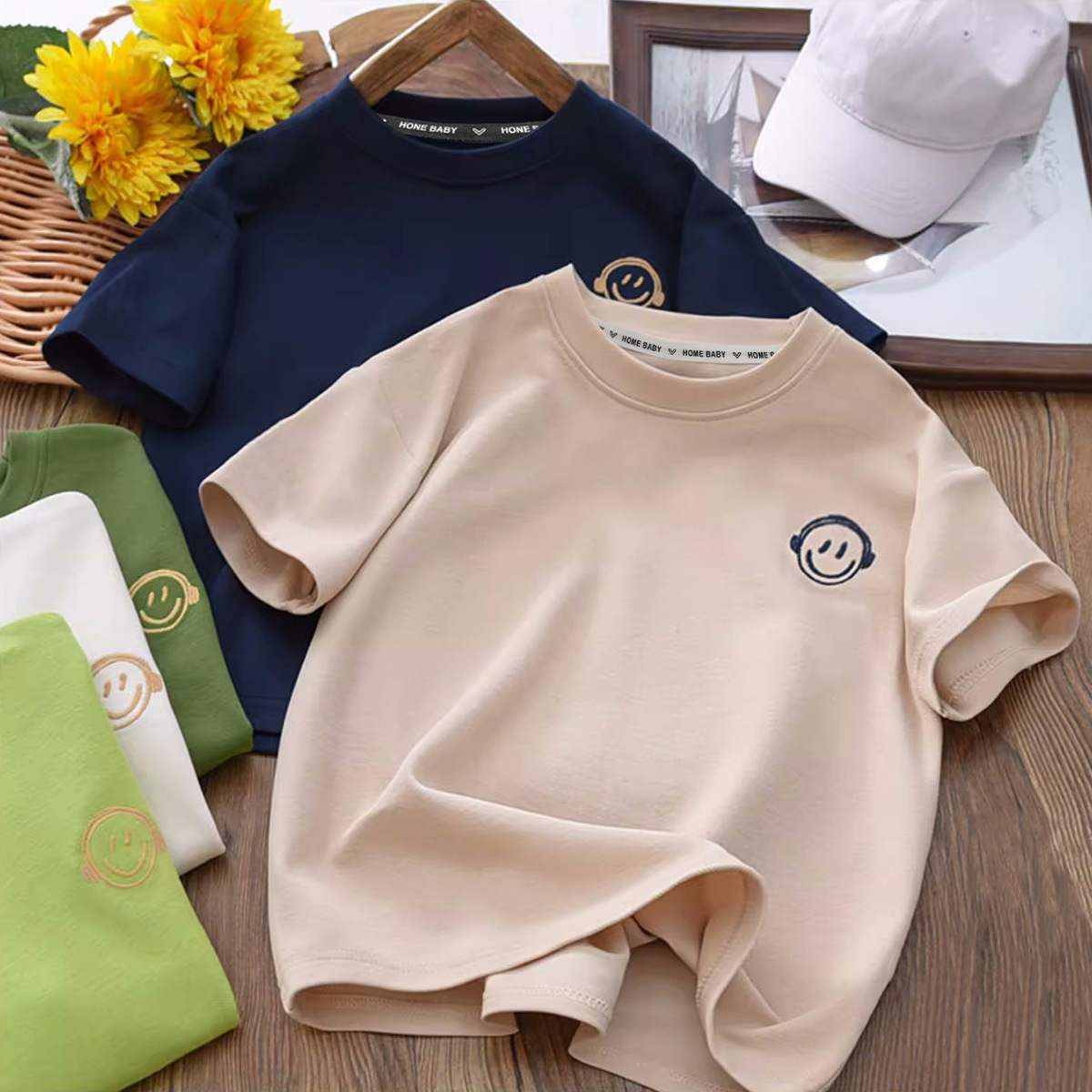 어린이 캐주얼 라운드 넥 솔리드 컬러 스마일리가 달린 반소매 티셔츠 소년 소녀 올 매치 반소매 웨스턴 스타일 탑