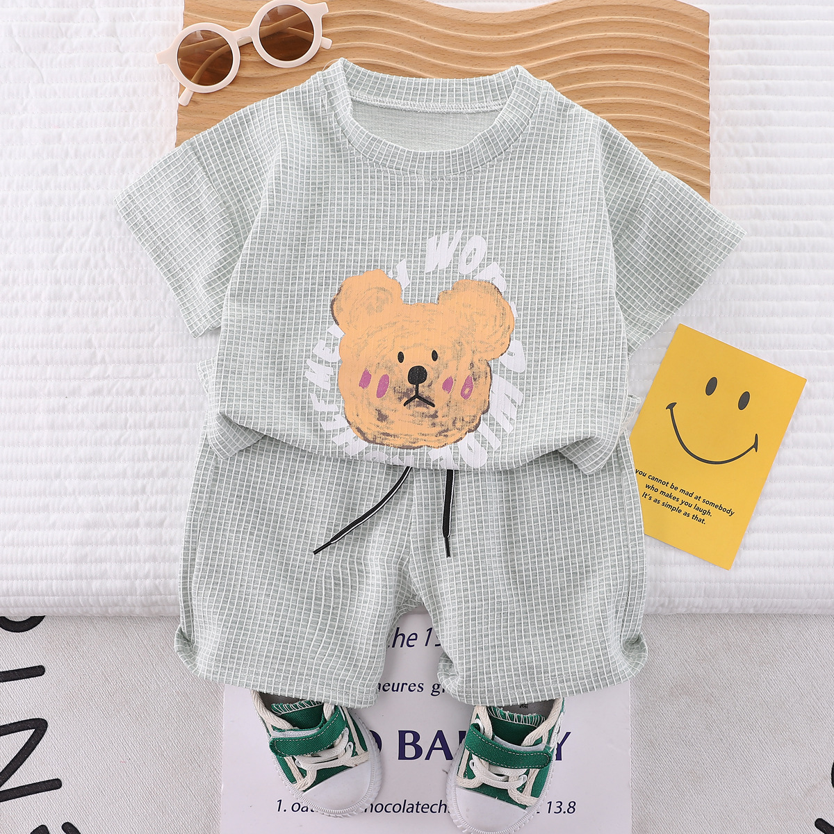 2024 소년 승무원 목 만화 곰 투피스 아기 여름 어린이 세트 그물 적조 제조 업체 도매