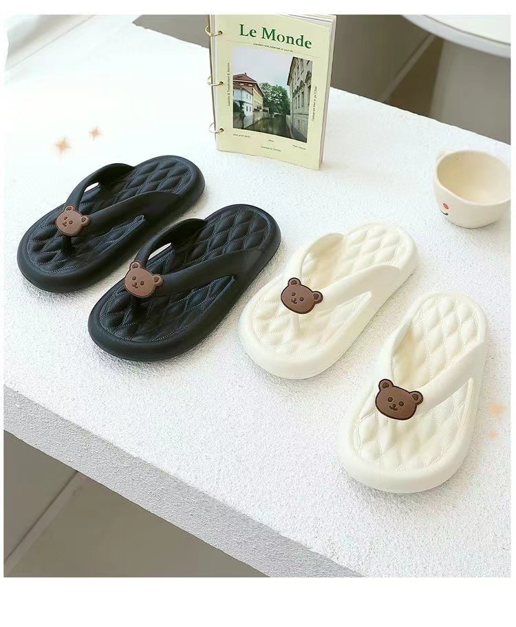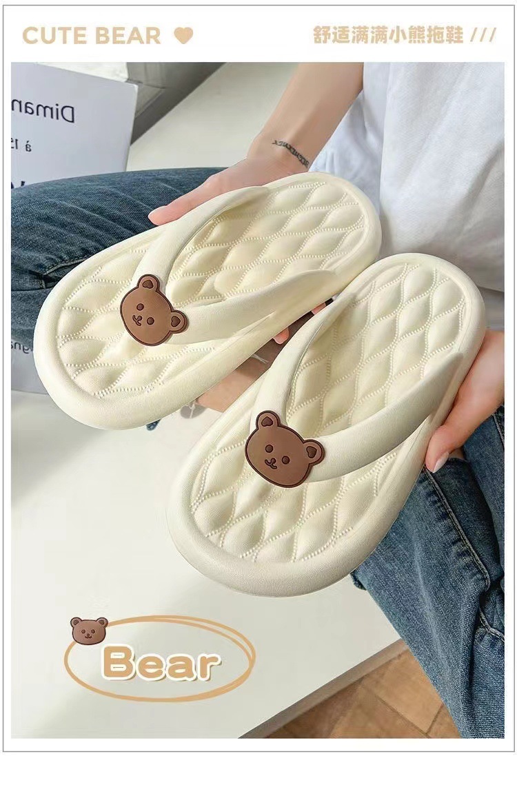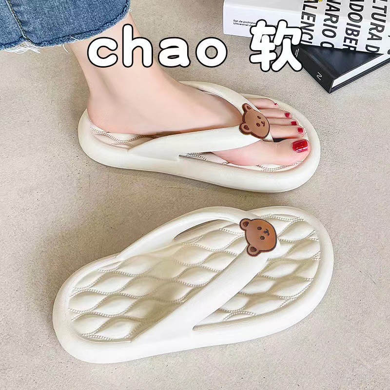 Dung Flip-flops 여성 여름 아우터웨어 2024 새로운 귀여운 곰 소프트 하단 미끄럼 방지 비치 플립 플롭
