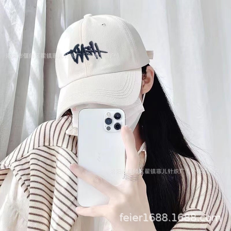 Ins Baseball Cap 딥 탑 곡선 Eaves는 얼굴 한국어 버전 레터 캡 한국 빈티지 자수 올 매치 야구 모자를 보여줍니다.스토어 가기