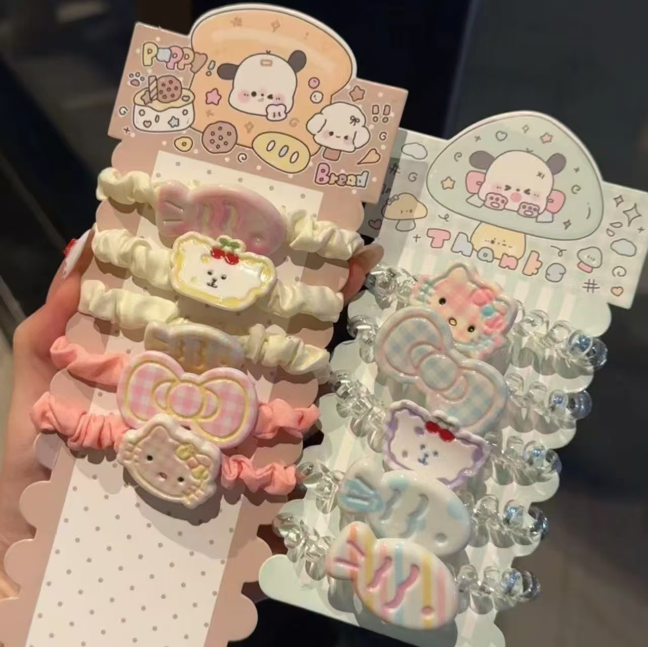 • 카툰 아크릴 삼단 고양이 머리끈 6종 세트 (선물 포장)
